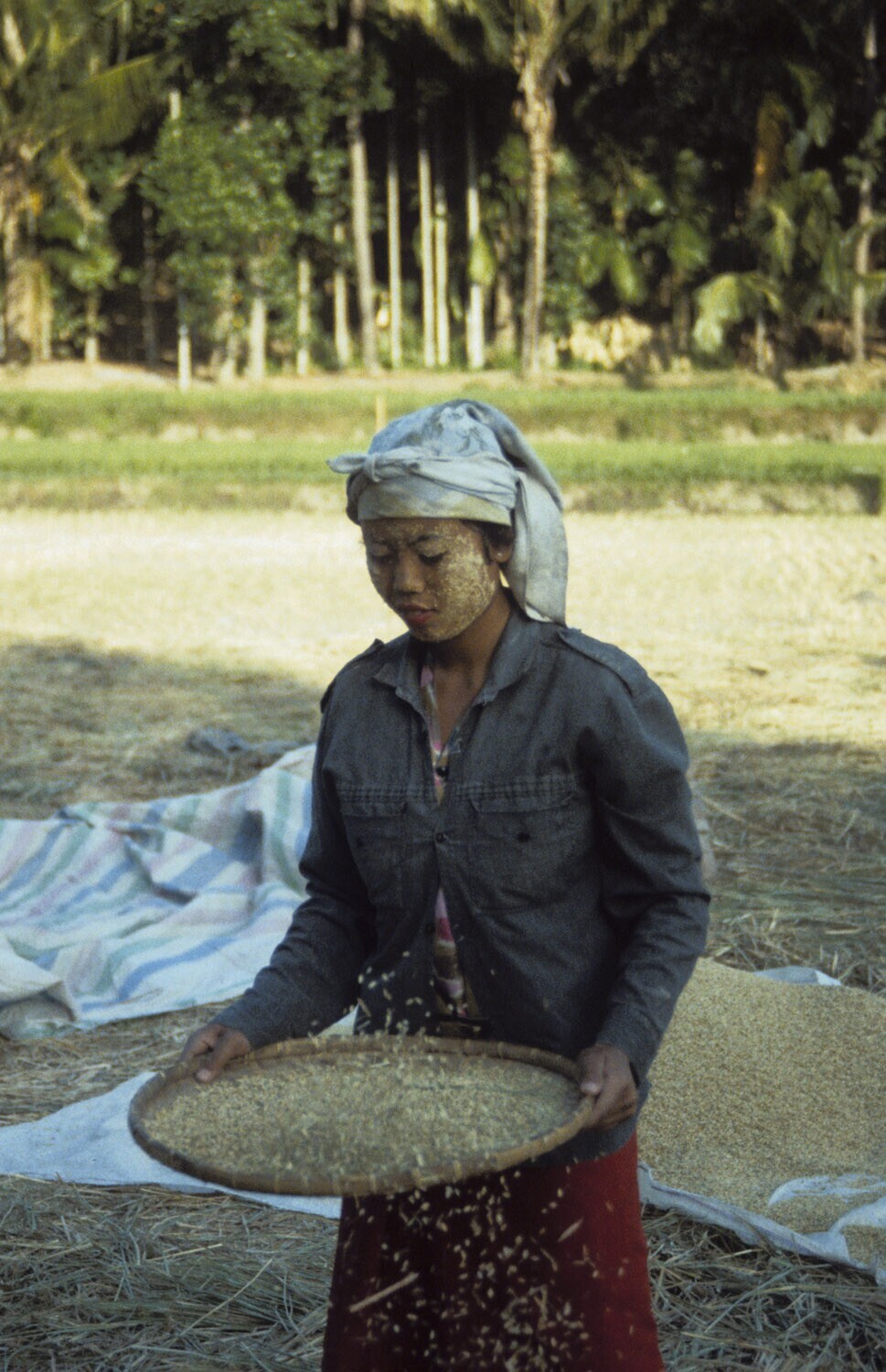 'Het wannen van rijst door twee vrouwen uit Sumbawa....