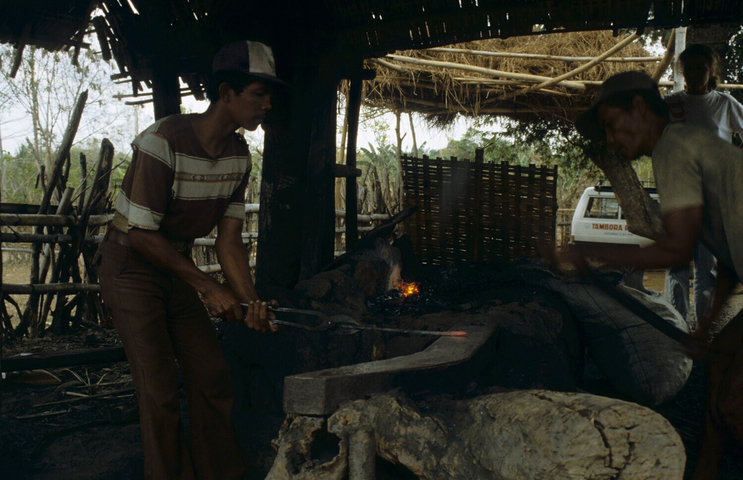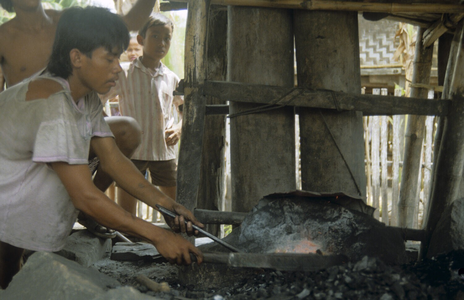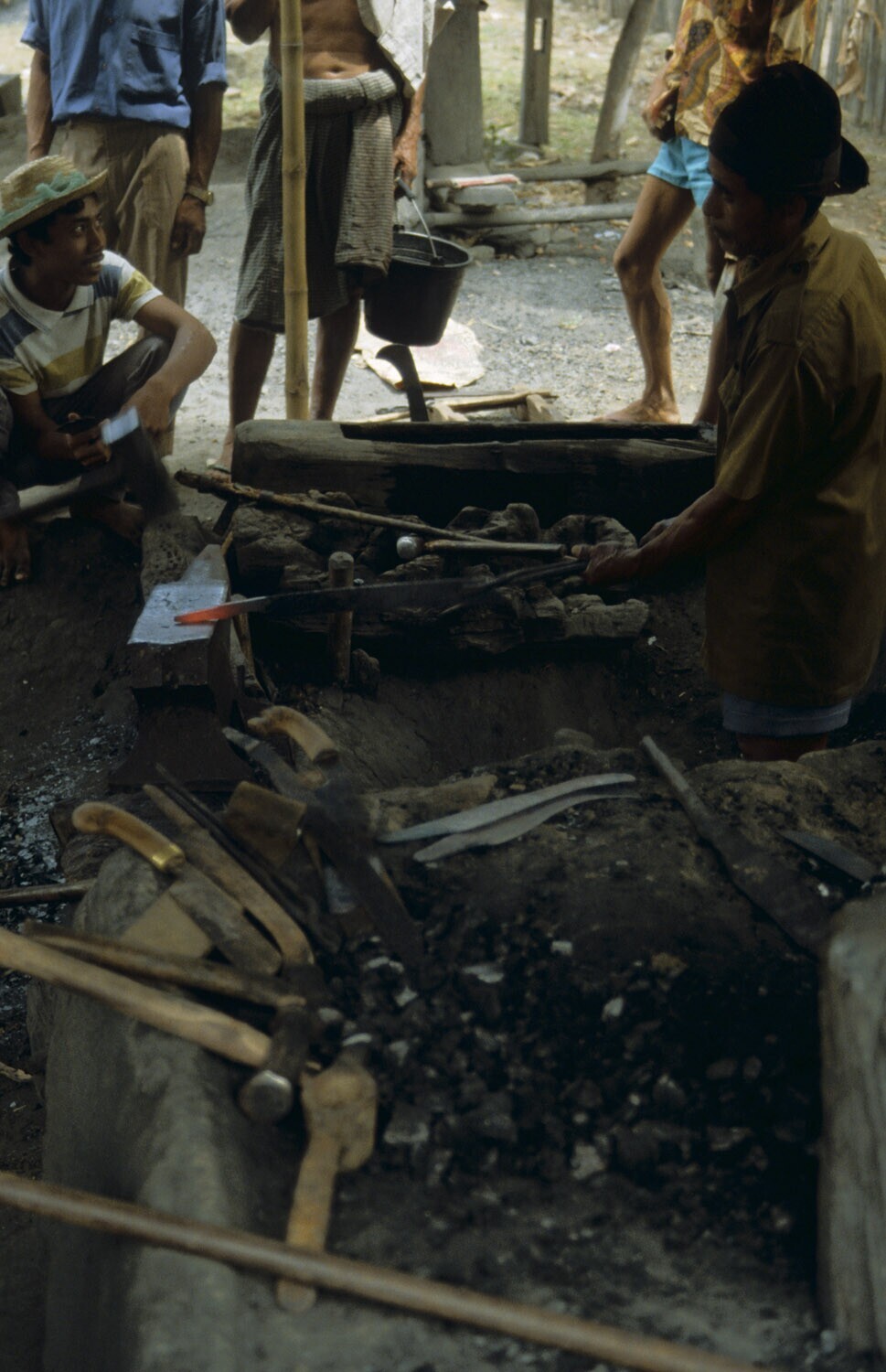 Dorp van smeden, Desa Talda. Blaasbalgen worden gema...