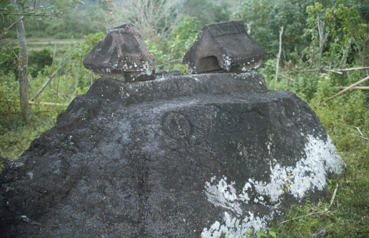 Een van de vijf megalitische graftombes in het dorp ...