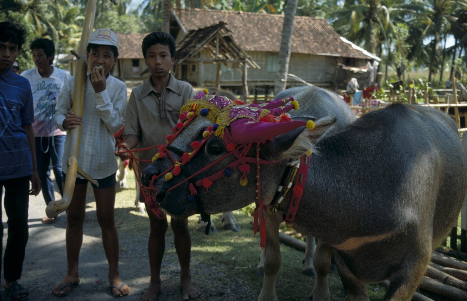 Karbouwen versierd voor de karbouwenrace