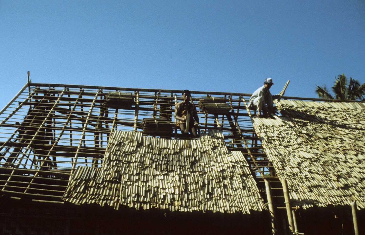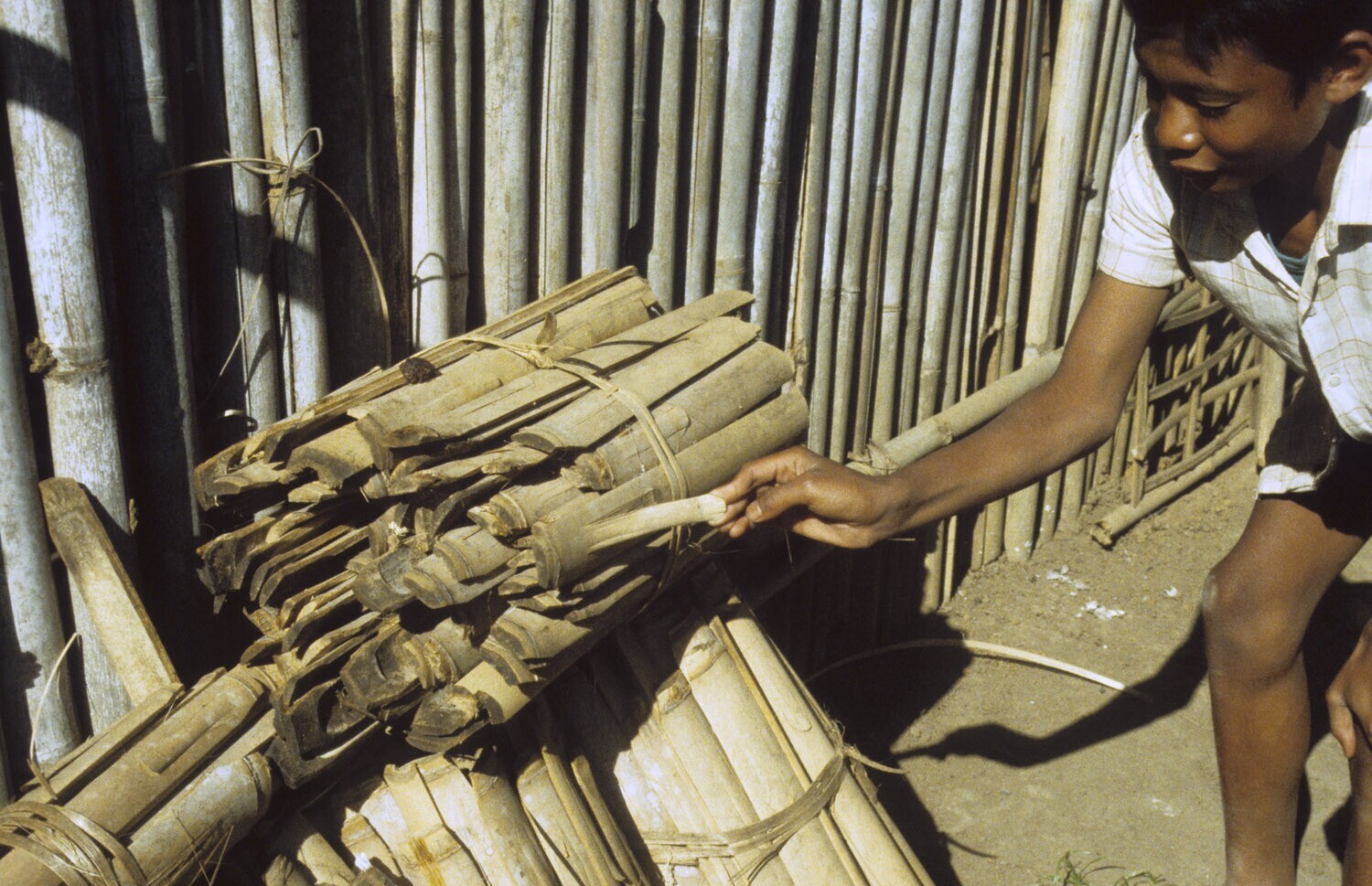 Bundel bamboe, dat gebruikt wordt als dakbedekking. ...