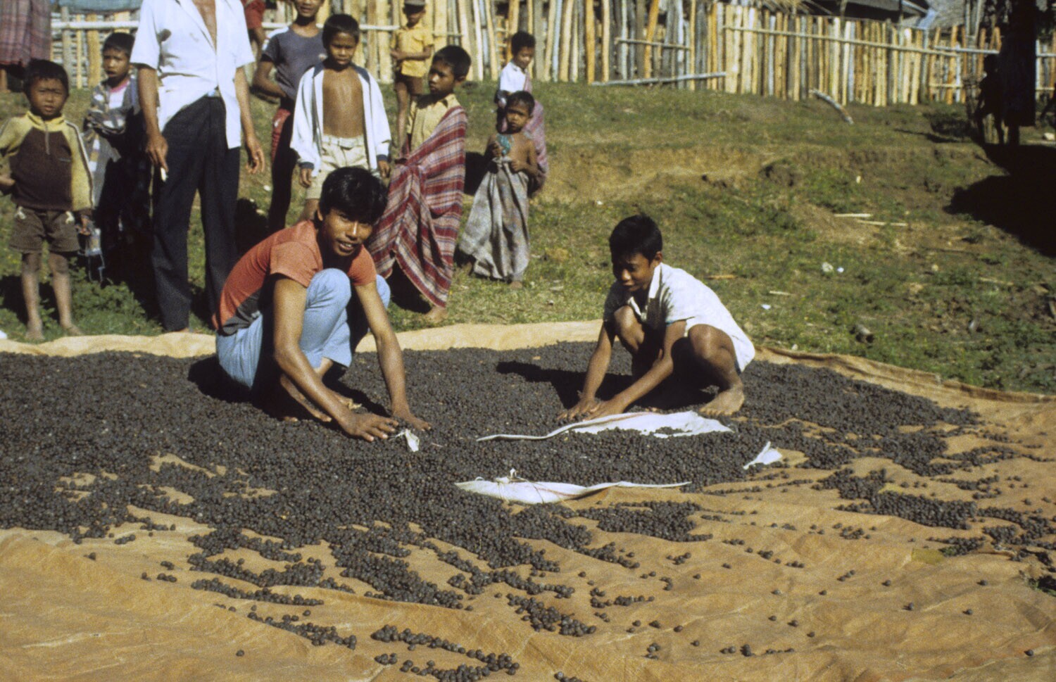 Het drogen van koffiebonen in de zon. Tepal, Sumbawa.