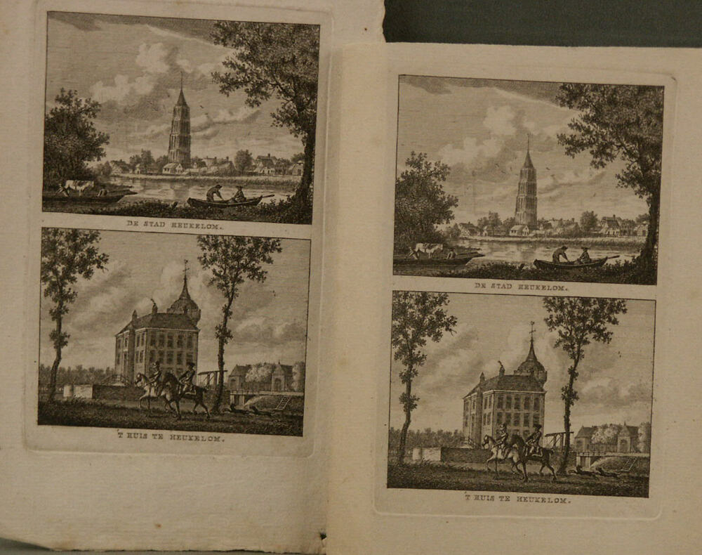 gravure voorstellende DE STAD HEUKELOM en 'T HUIS TE...