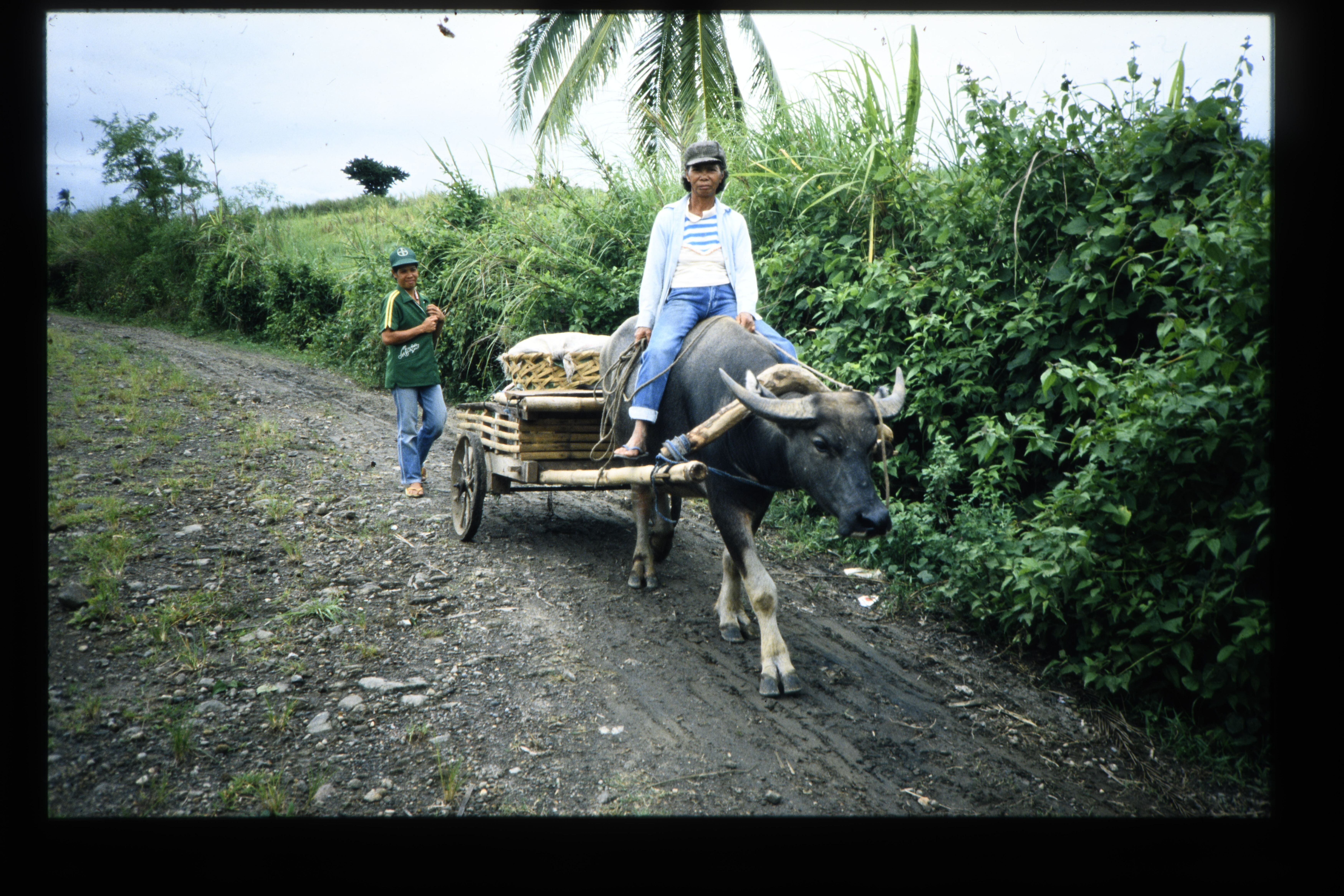 'Vervoer per kar met een karbauw ervoor '