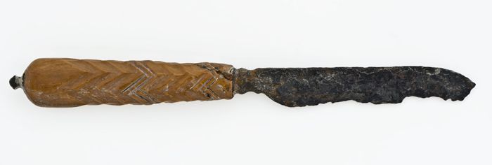IJzeren mes met benen heft met zigzag reliëf patroon