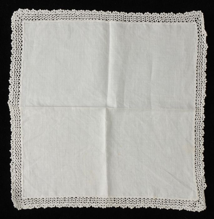 Vierkante wit linnen zakdoek met een gehaakt randje