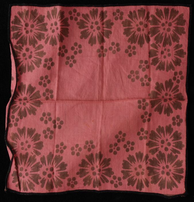 Vierkante roze katoenen zakdoek met zwart bloemmotie...