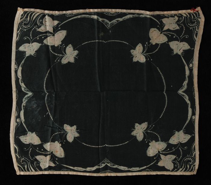 Zwart katoenen zakdoek met opdruk van vlindermotief