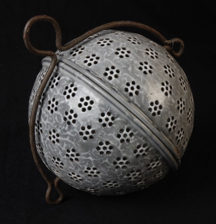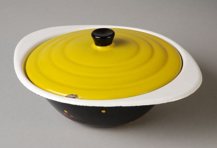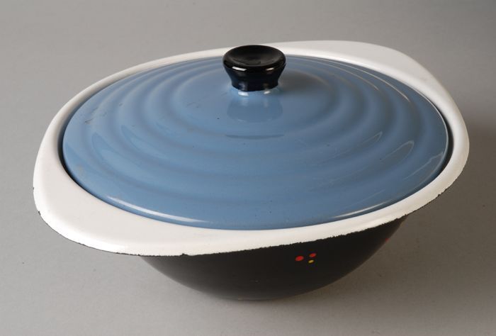 Rijstbol van grijs gewolkt emaille, twee halve bolle...