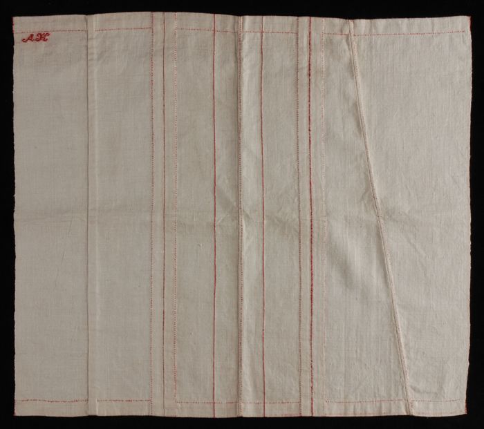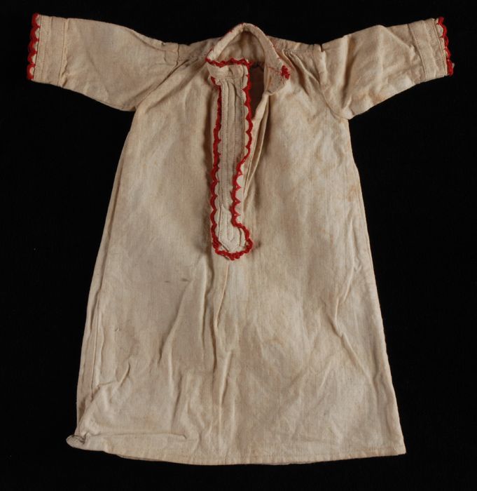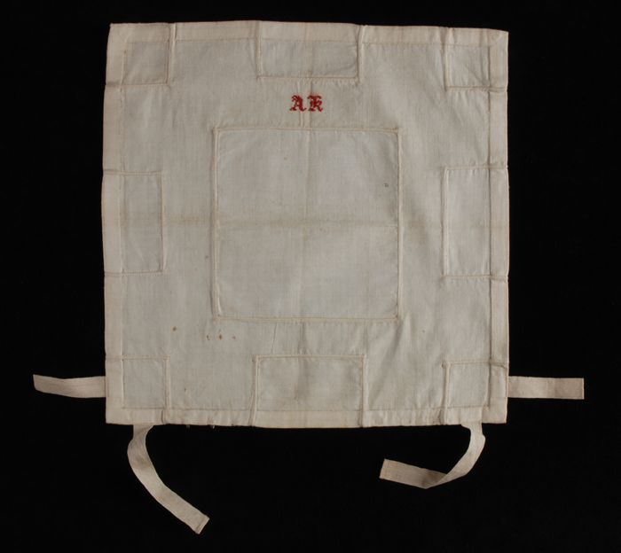 Kindermanipel van bordeaurode stof met gele sierstik...