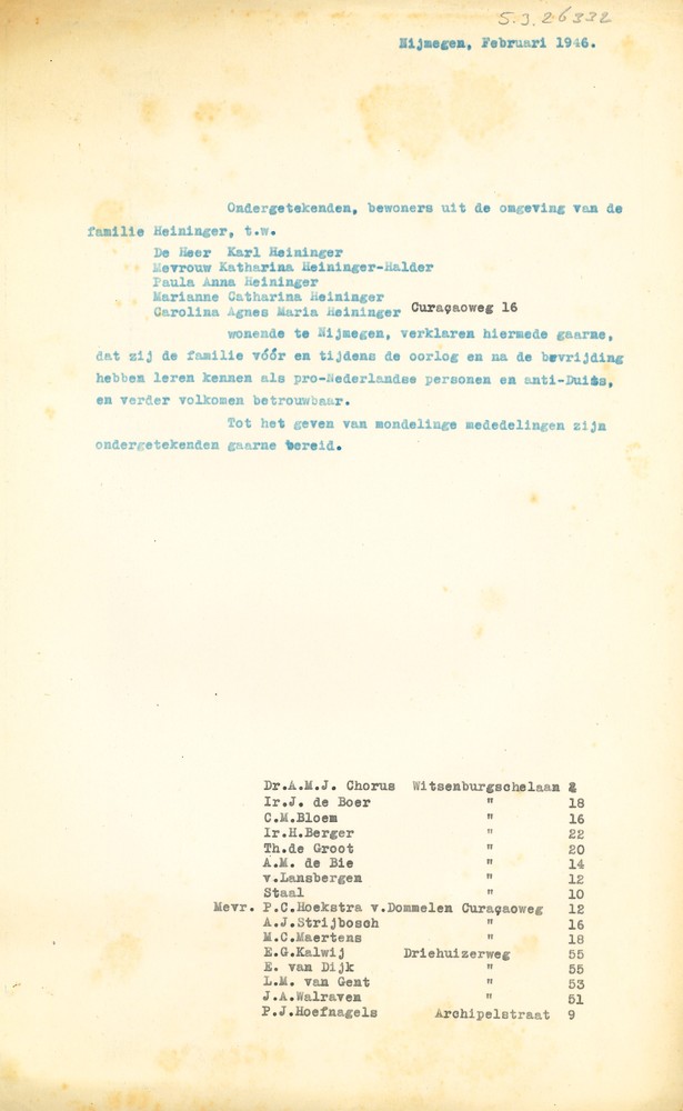 bewoners uit de omgeving van de familie Heininger ve...