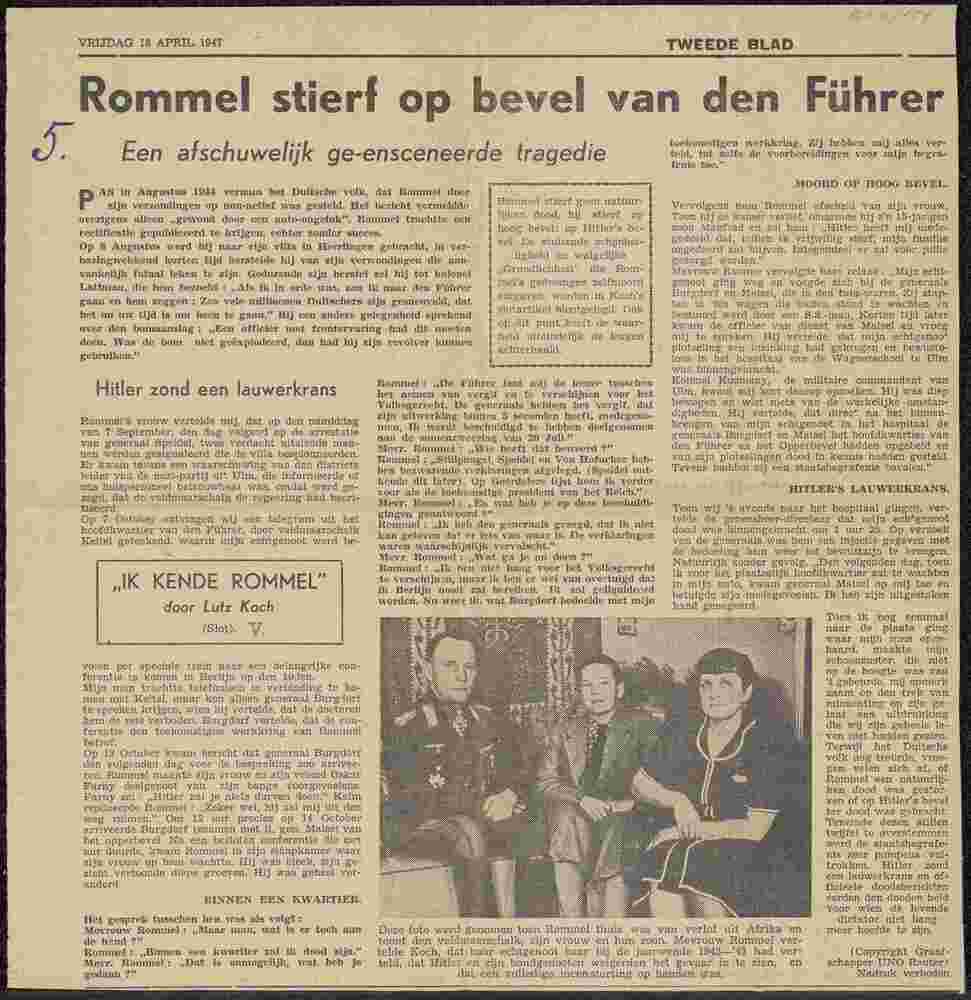 Rommel stierf op bevel van den Führer, 18 april 1947