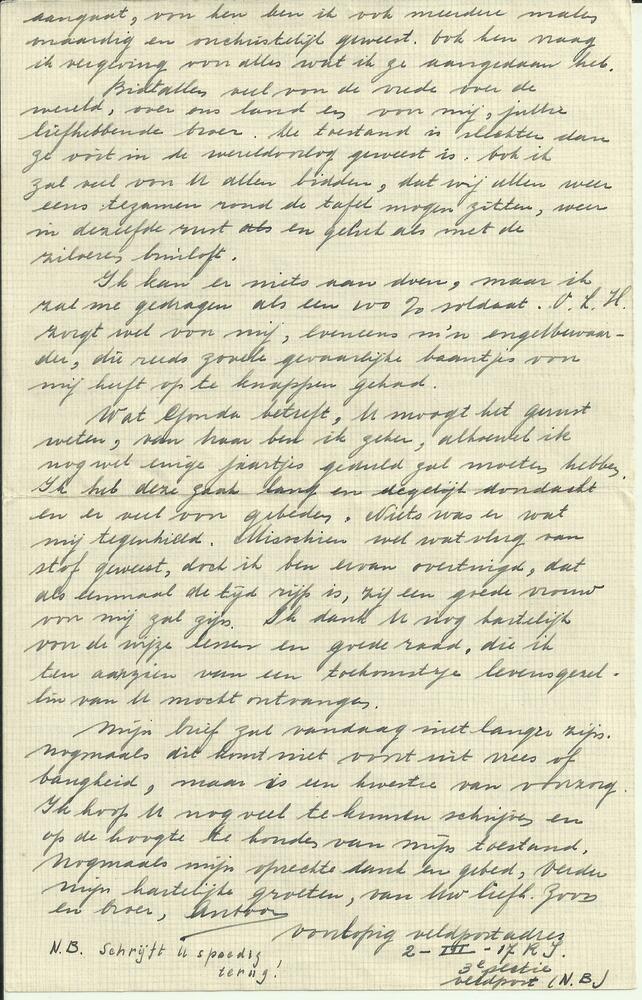 Brief van Antoon Jeuken aan familie, 11 november 1939