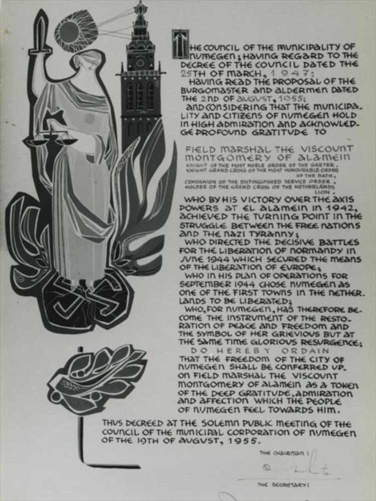 oorkonde ereburgerschap Nijmegen aan veldmaarschal M...