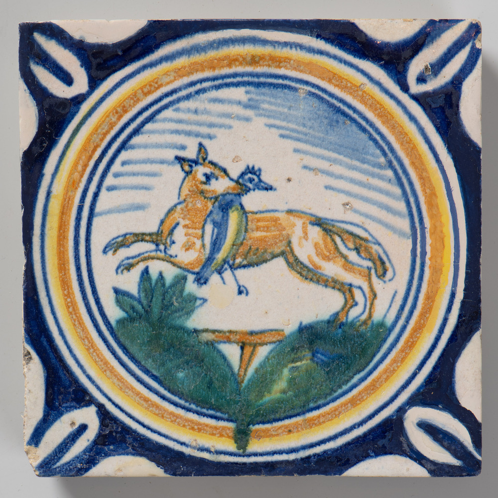 tegel van keramiek met tinglazuur, voorstellende: ho...