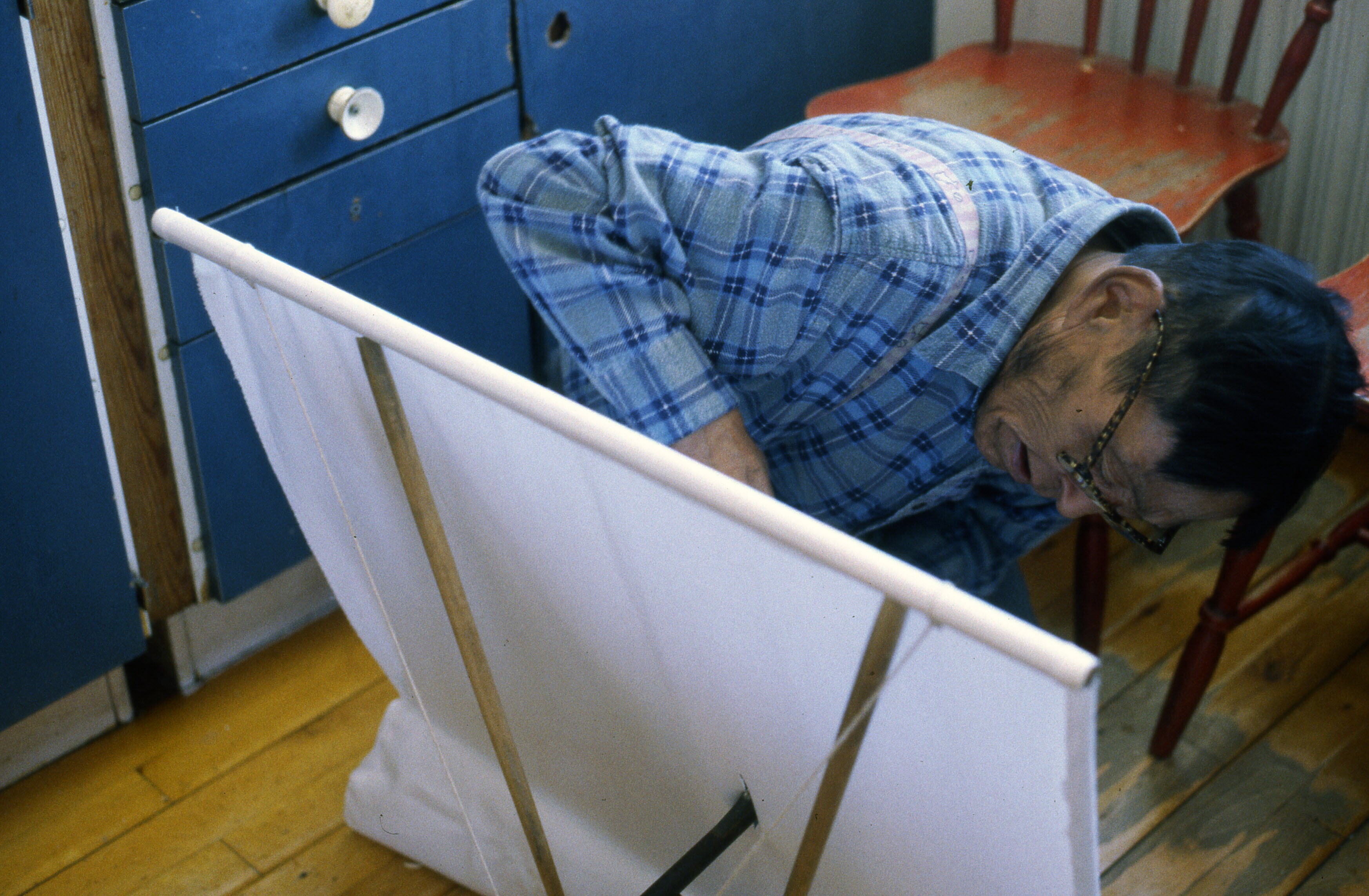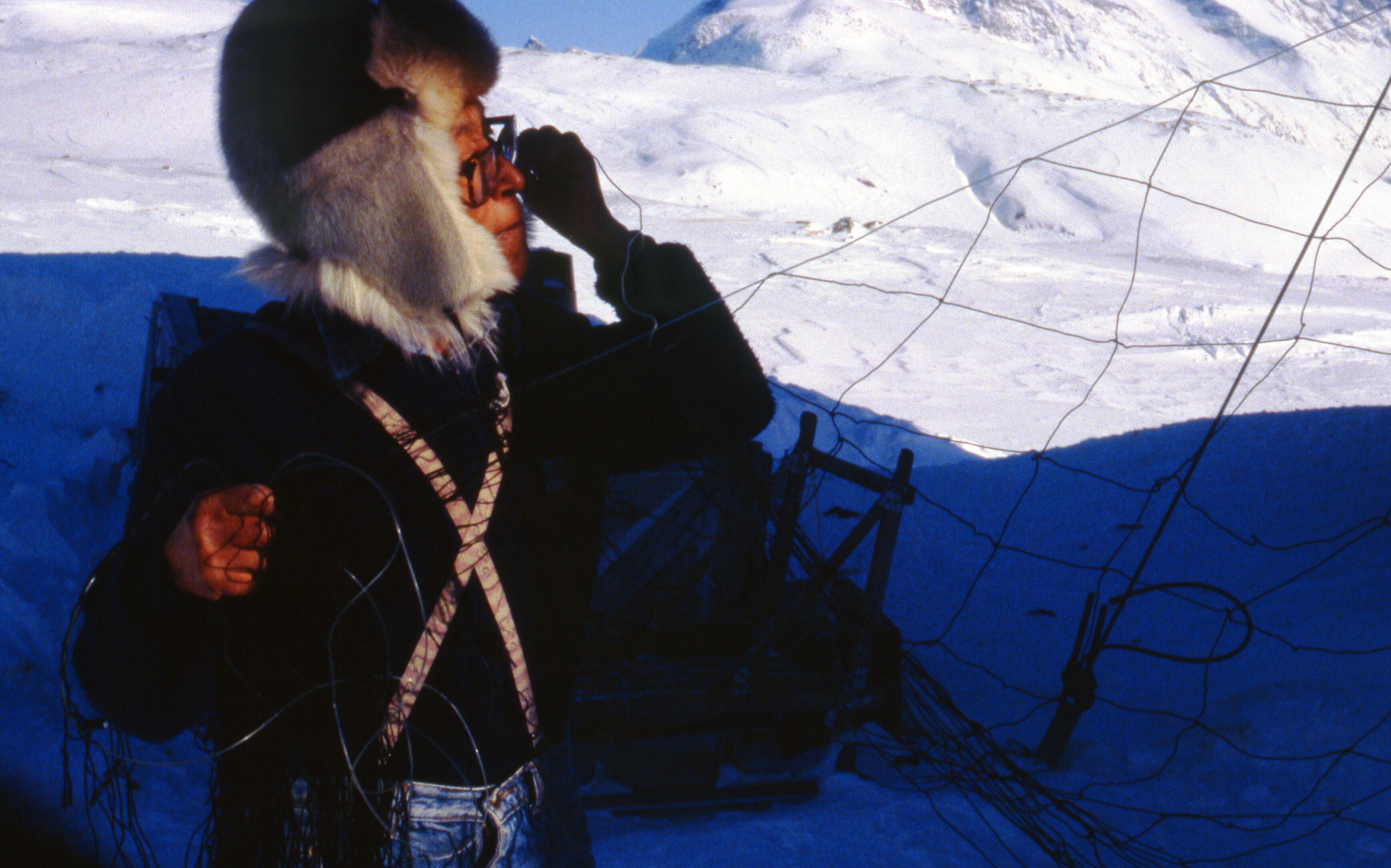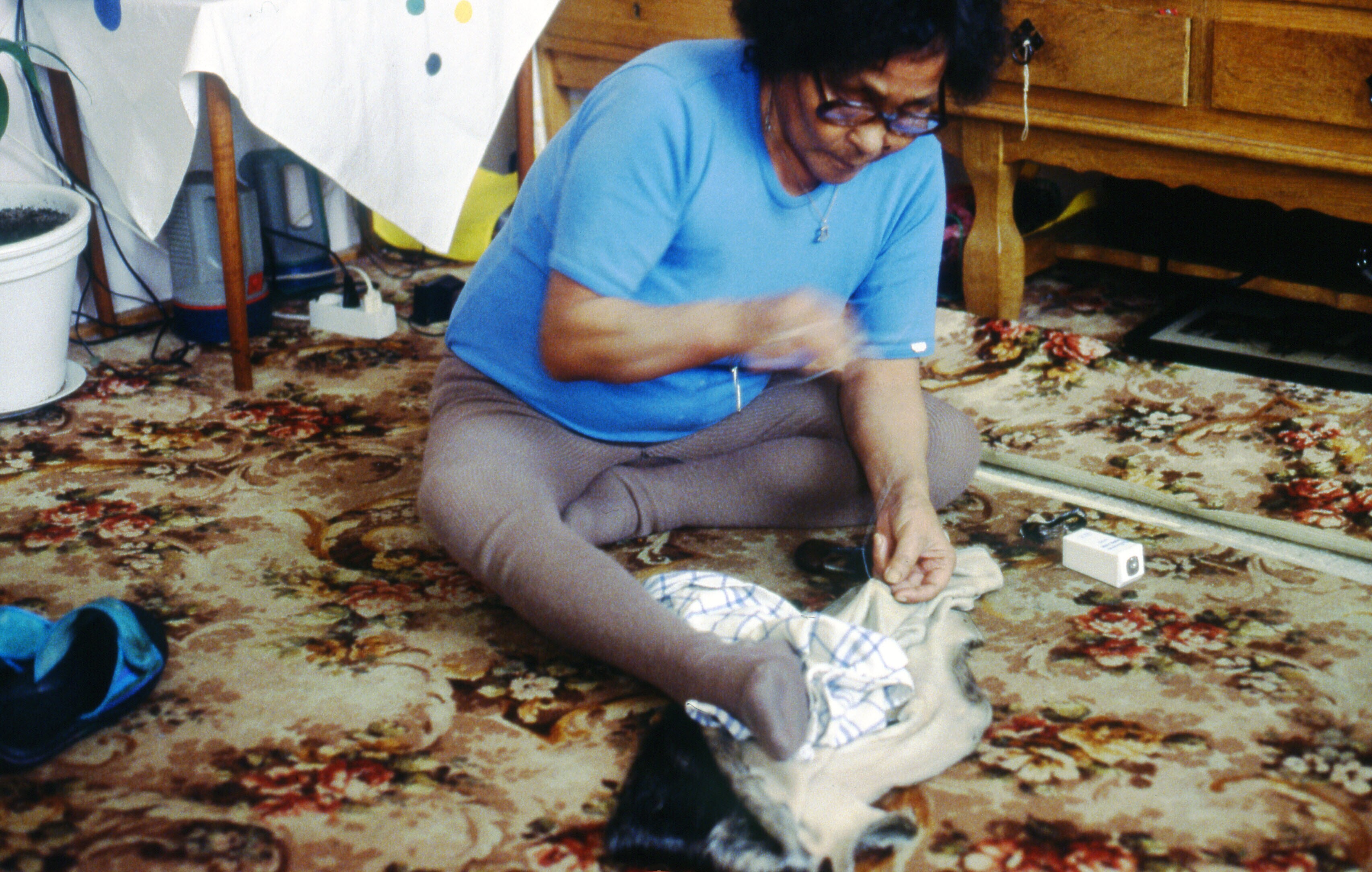 - Asta Jonathansen bewerkt een hondenhuid. Tiniteqil...