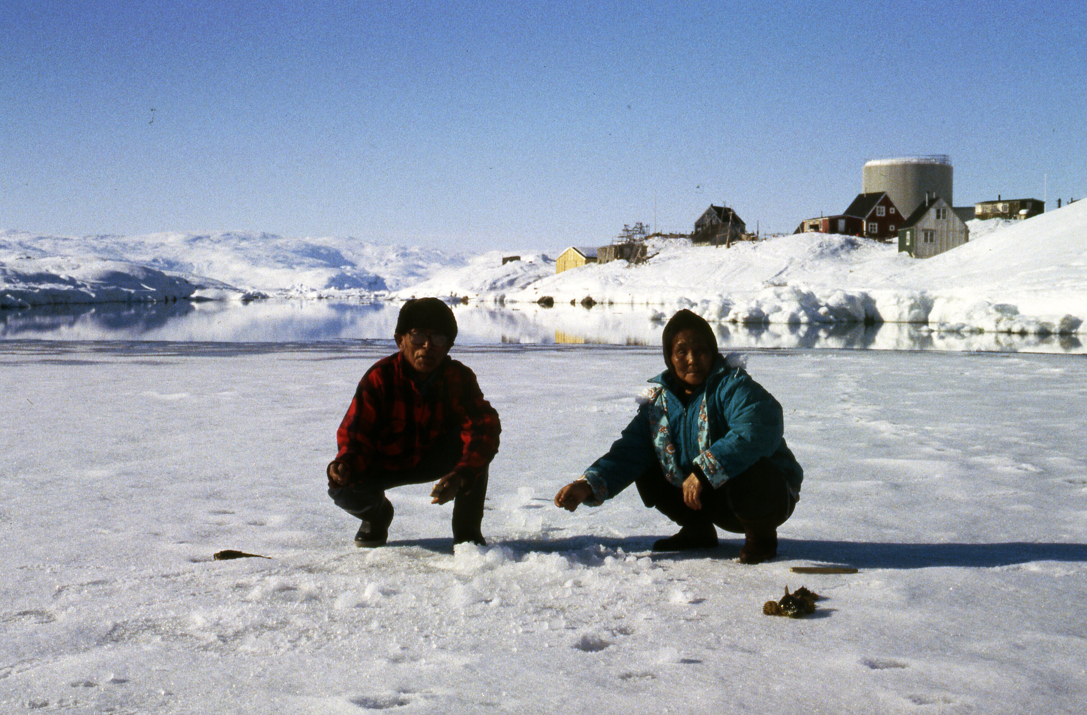 - Lars en Asta Jonathansen zijn bezig met ijsvissen ...
