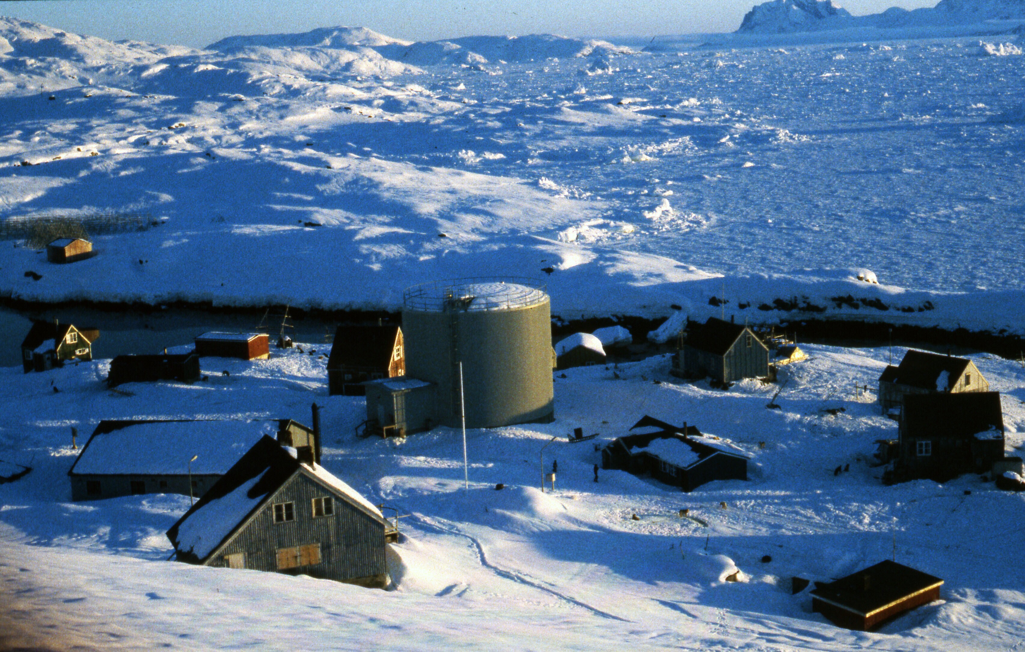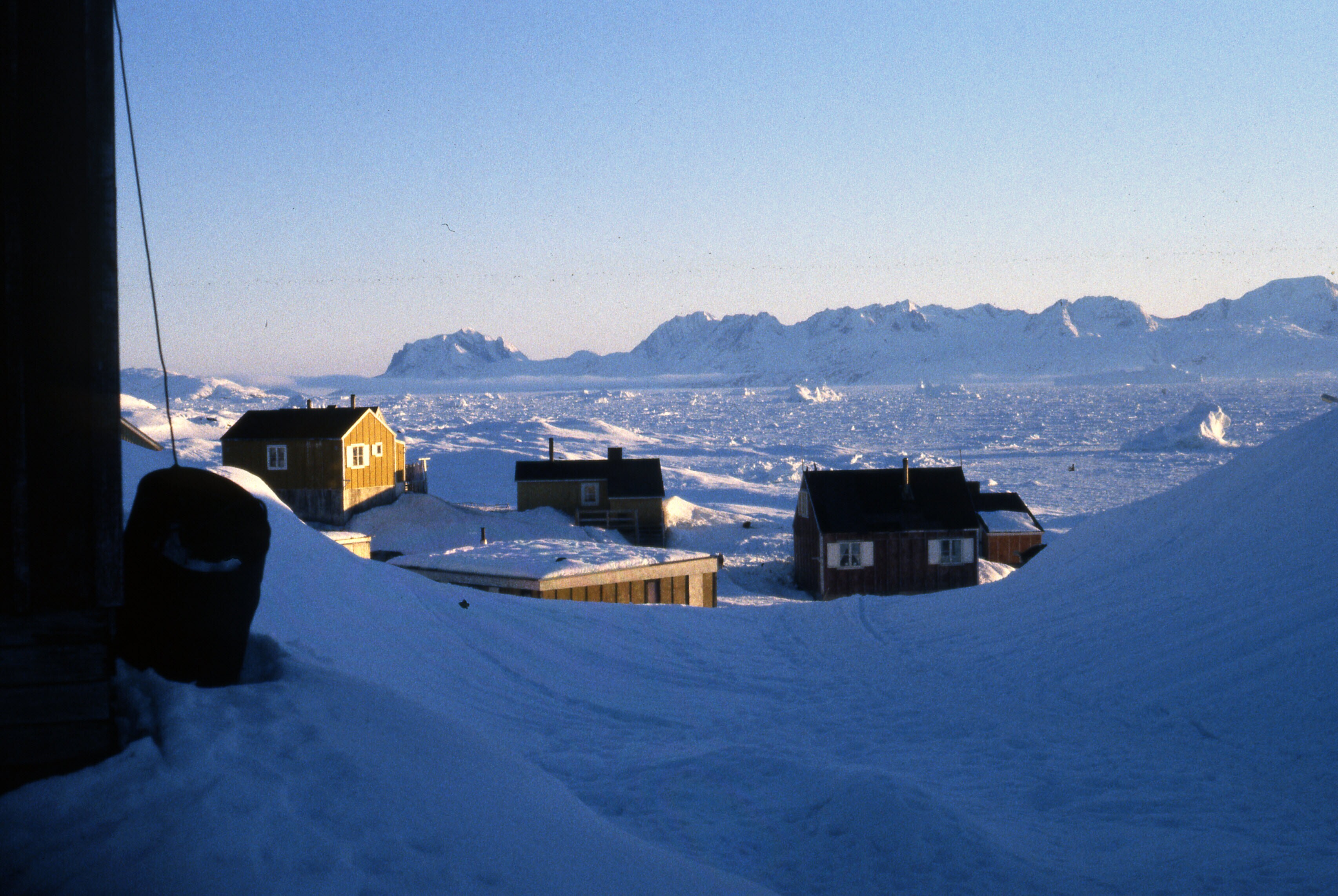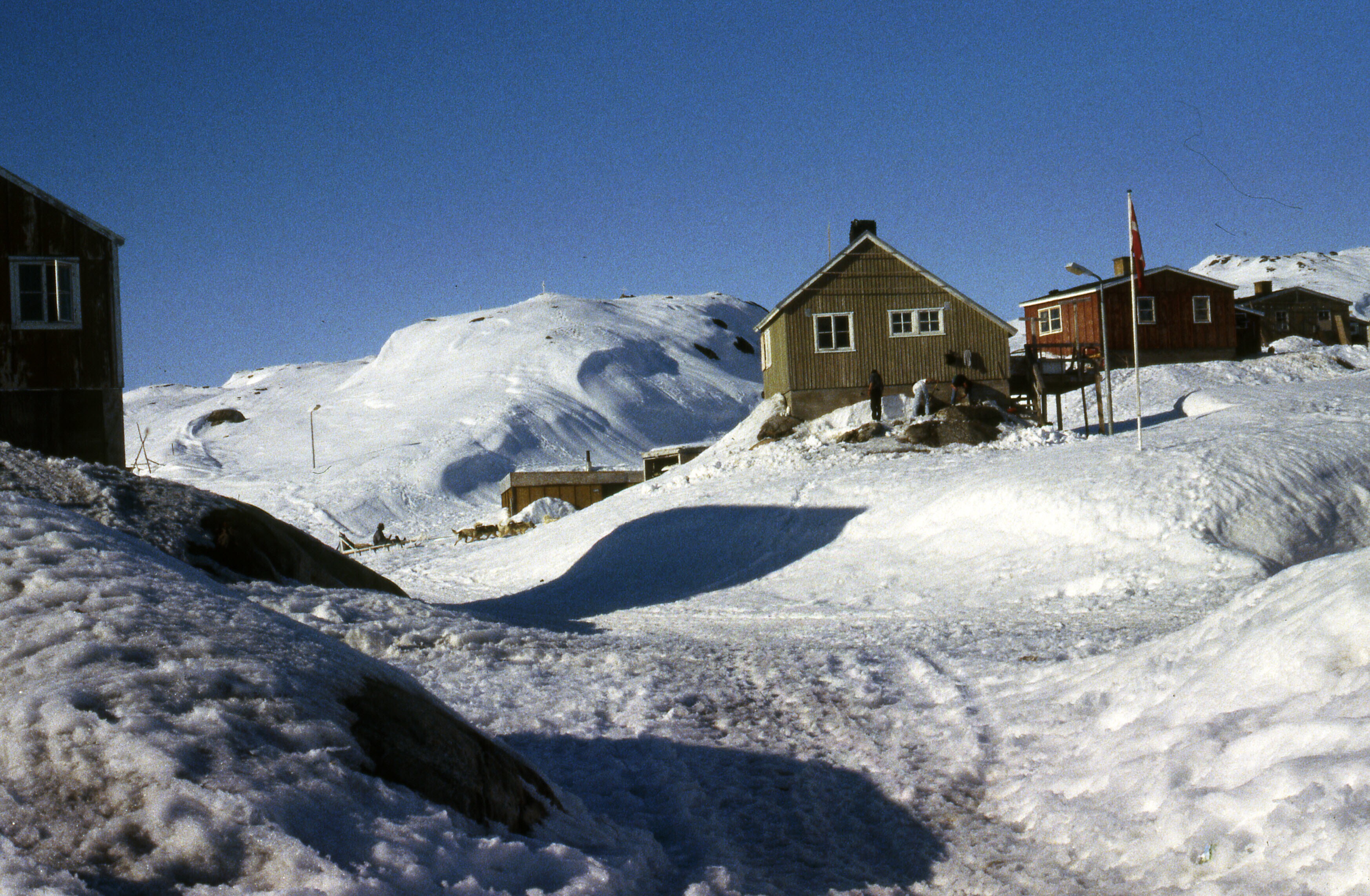 - Gezicht op Tiniteqilaaq in de sneeuw, maart-april .