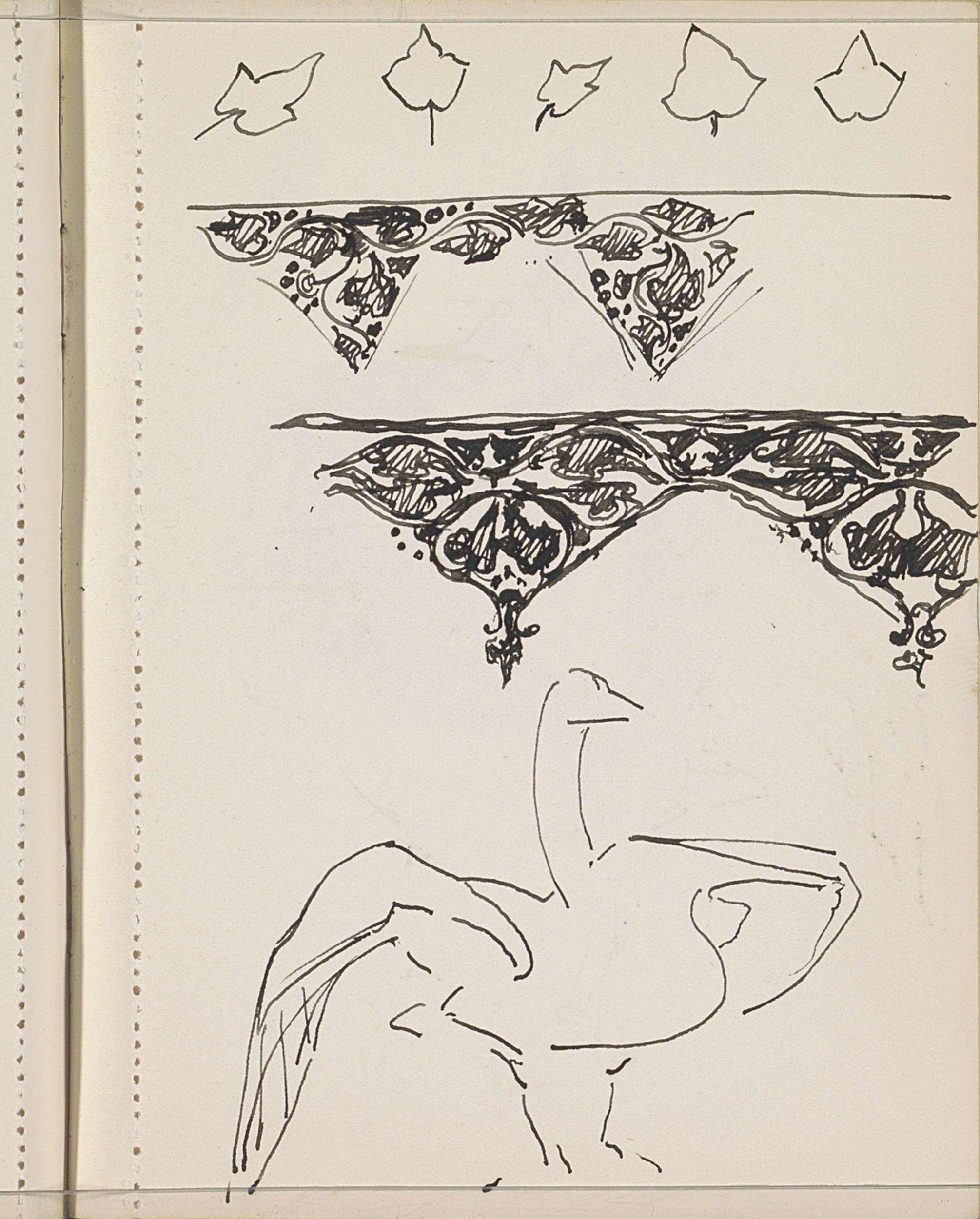 Zwaan, bladeren en ornamenten