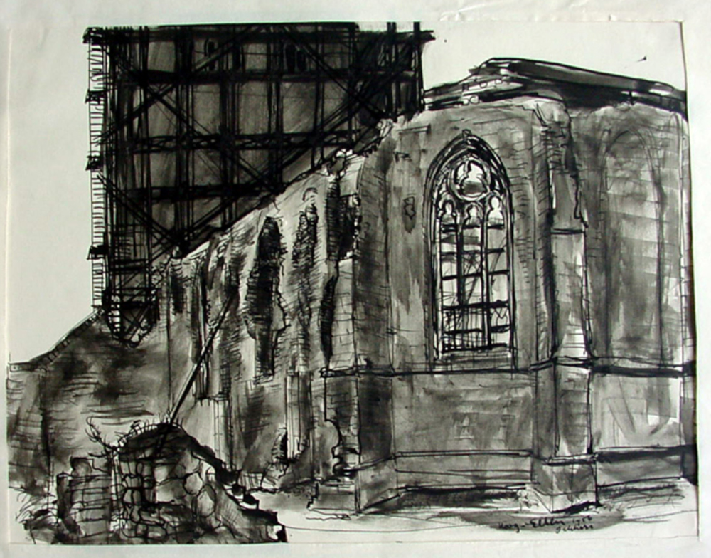 Foto, voorstellende de Sint-Barbarakerk te Culemborg...