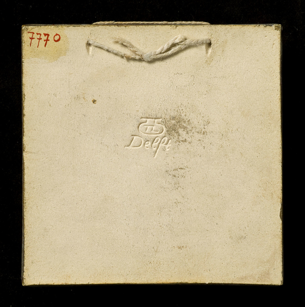 tegel van aardewerk met tinglazuur, voorstellende: o...