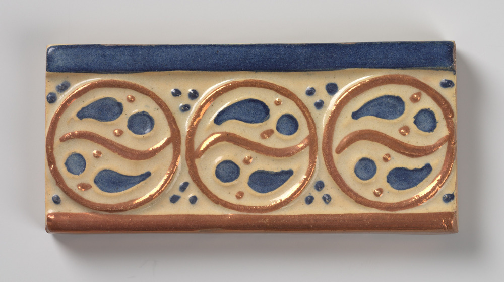 randtegel van aardewerk in reliëf met lusterglazuur,...