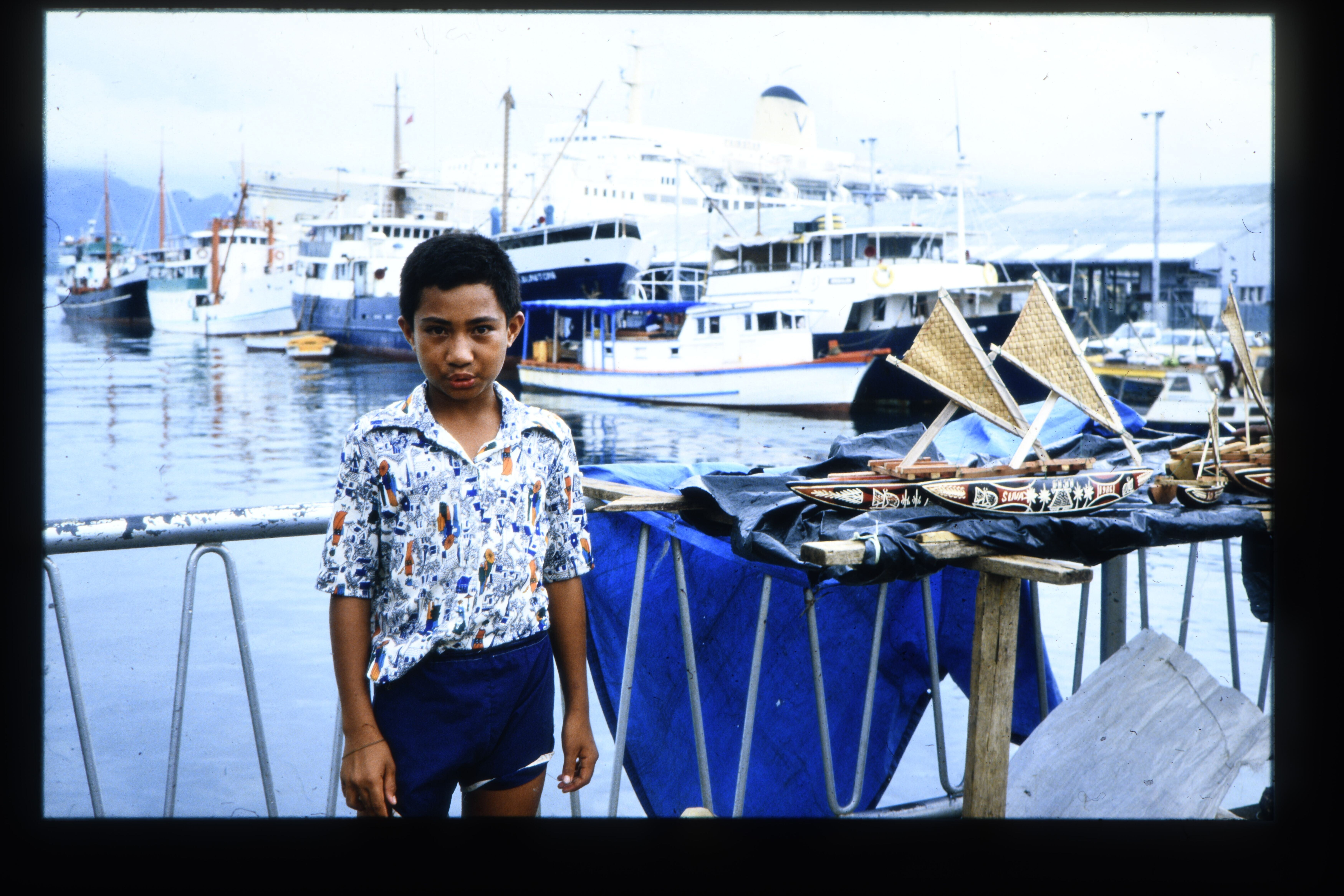 'Jongetje verkoopt zelfgemaakte houten bootjes'