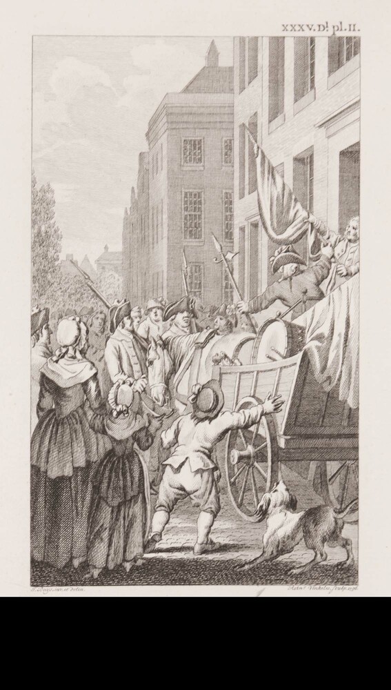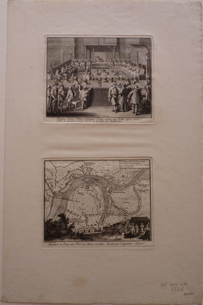 Gravure "Stadhouder Pr. Frederik Hendrik in vergader...