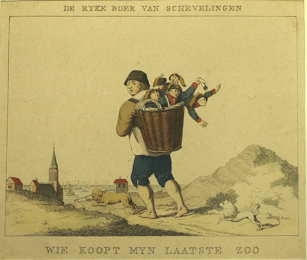 Spotprent, "De Rijke Boer van Schevelingen'met "Wie ...