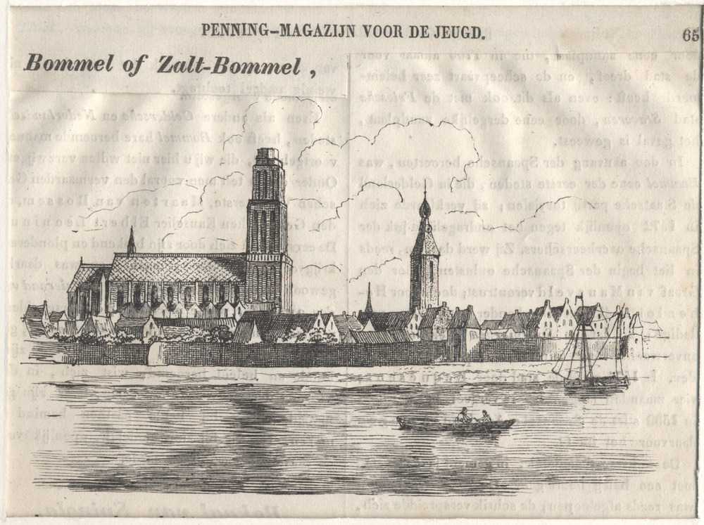 riviergezicht op de stad Zaltbommel met vestingwerke...