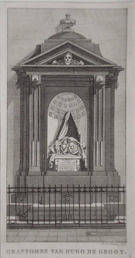 Gezicht op de graftombe van Hugo de Groot. Gravure, ...
