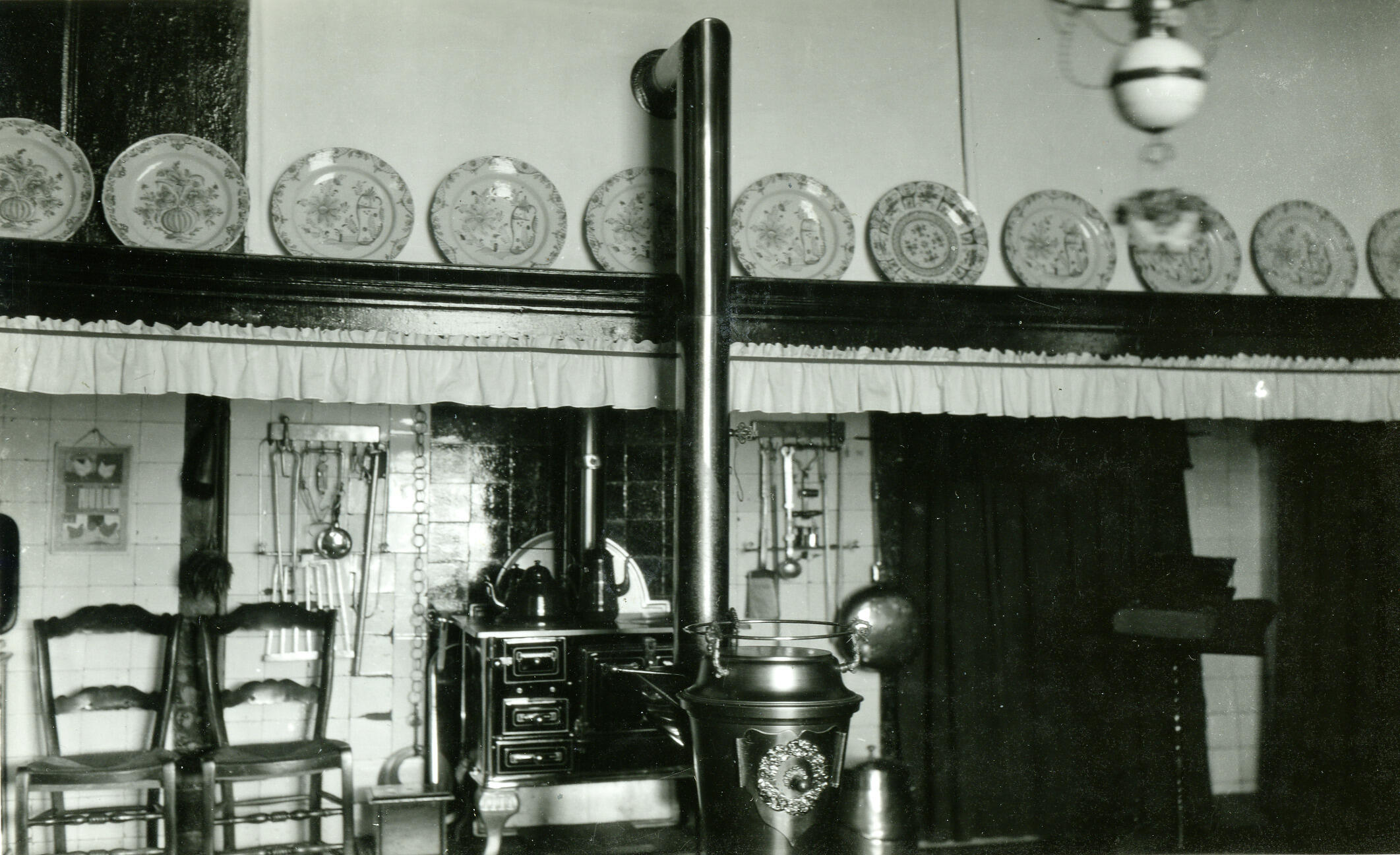 Keukeninterieur in een boerderij, Bennekom, 1936 (zw...