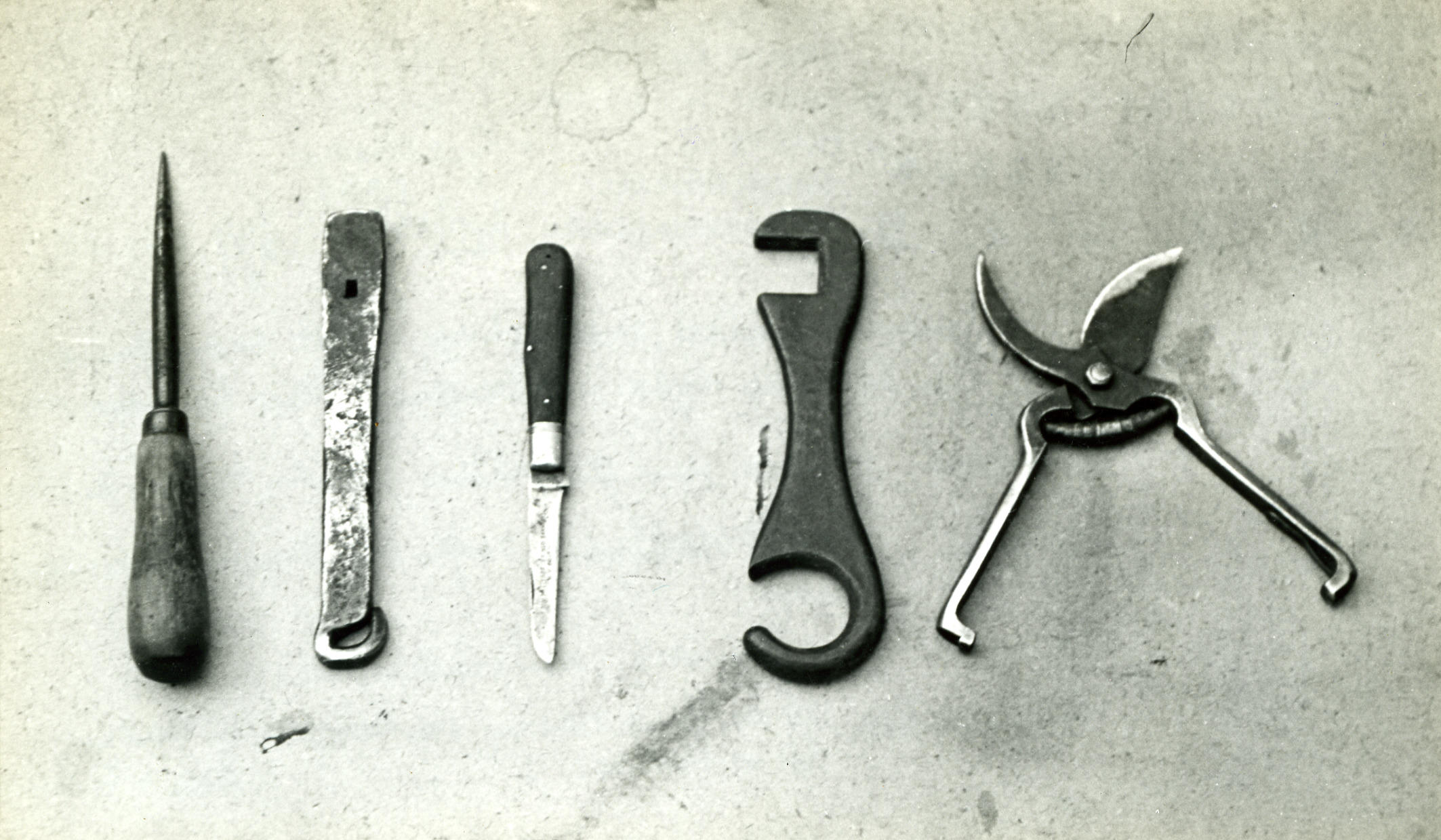 Mandenmakersgereedschap, Giethoorn, 1947 (zwart-wit ...