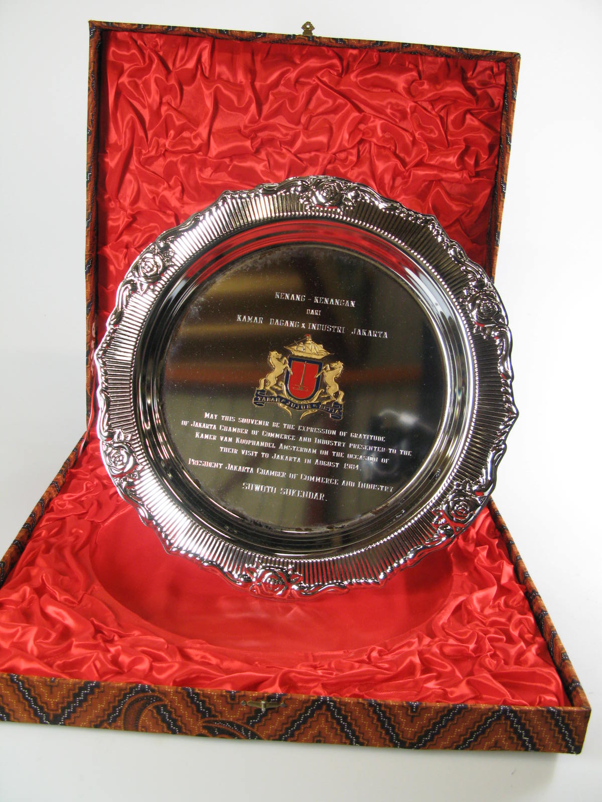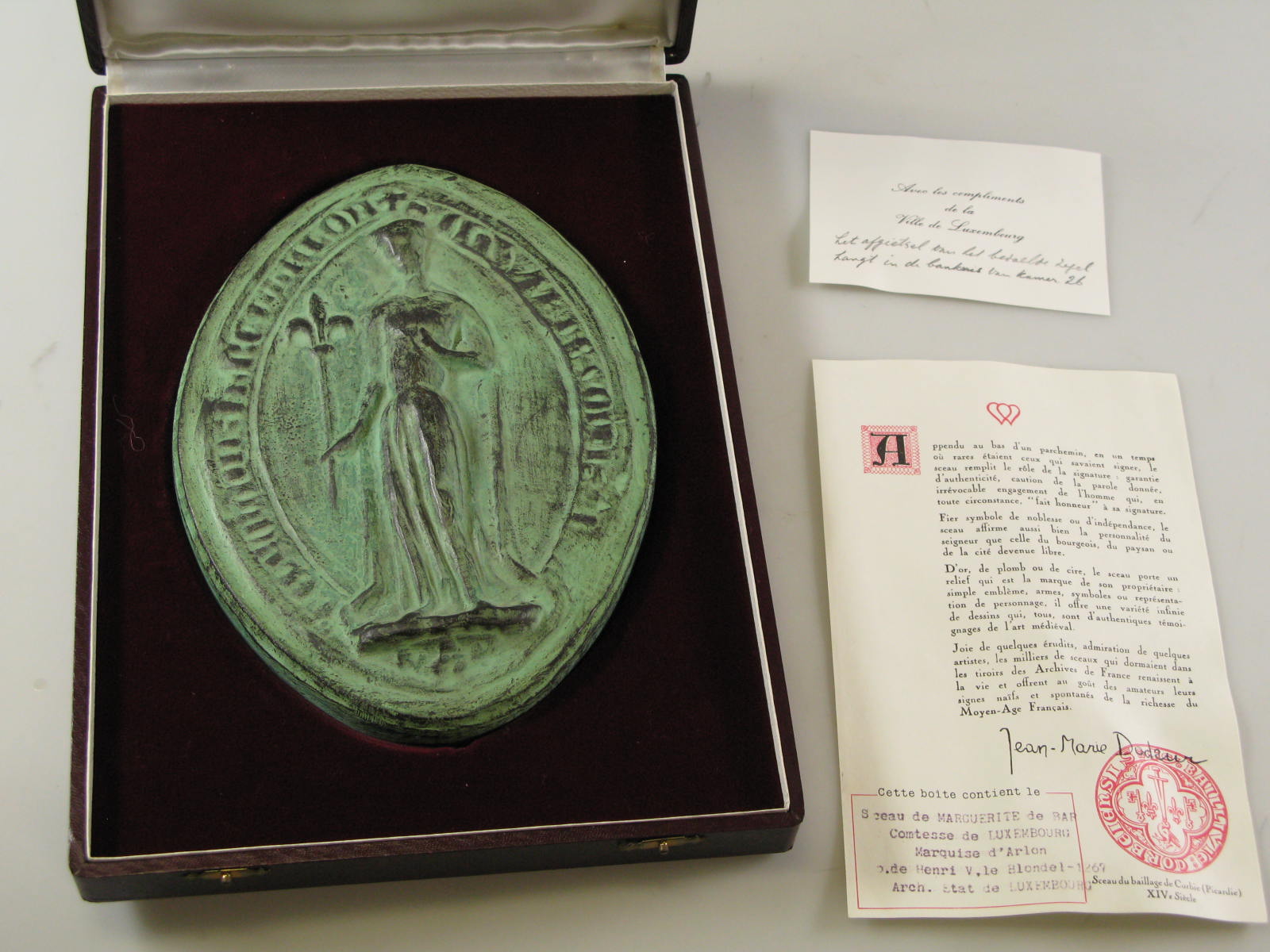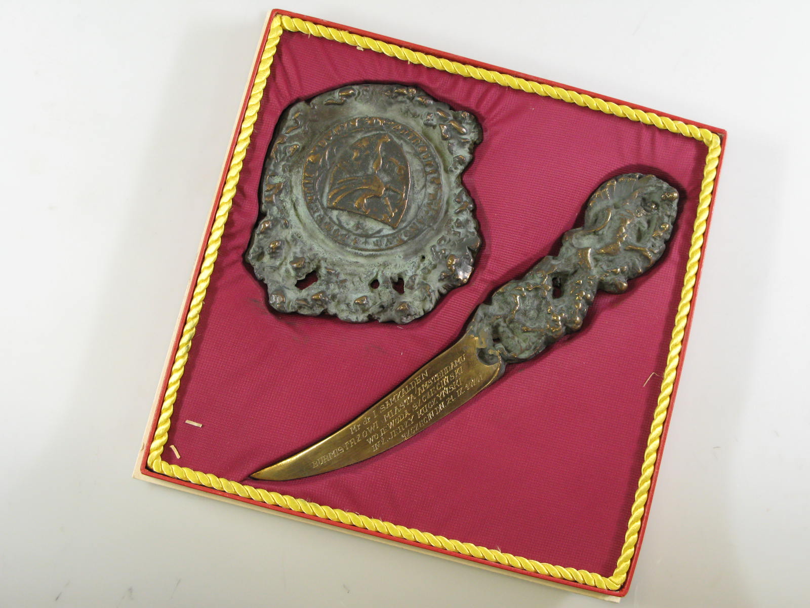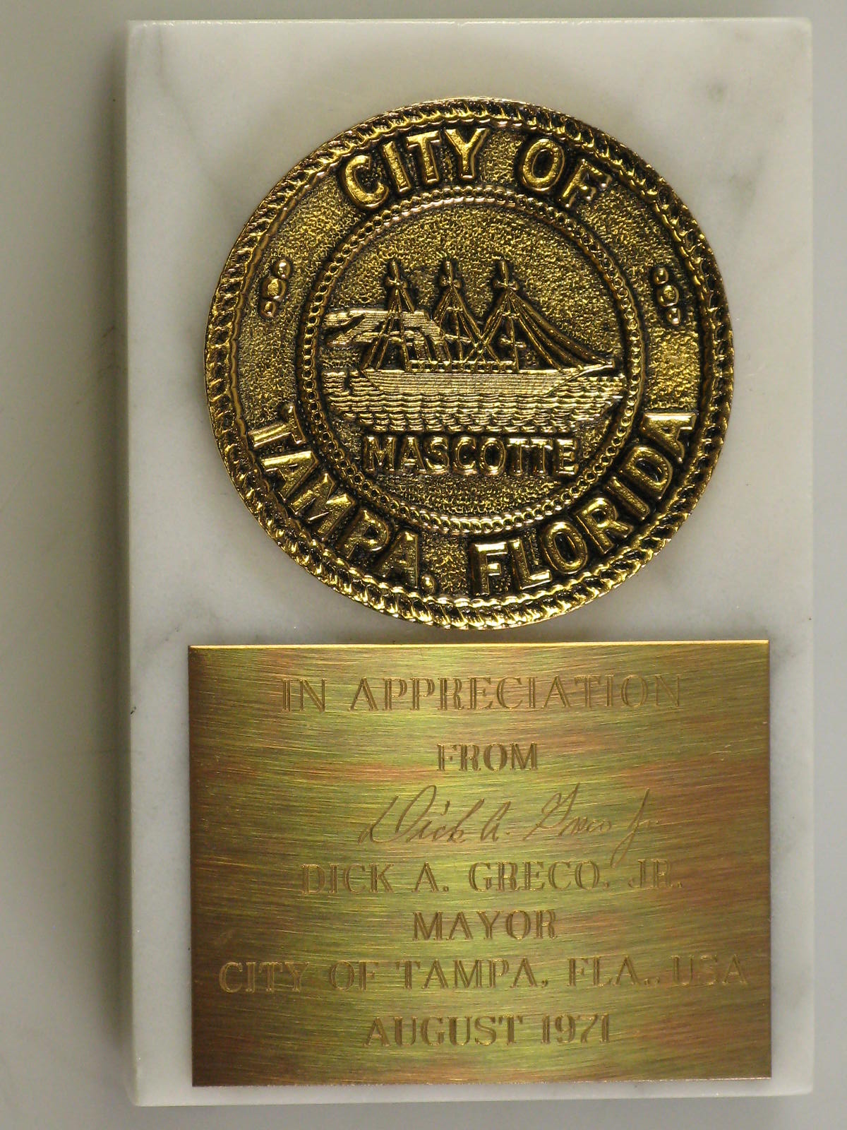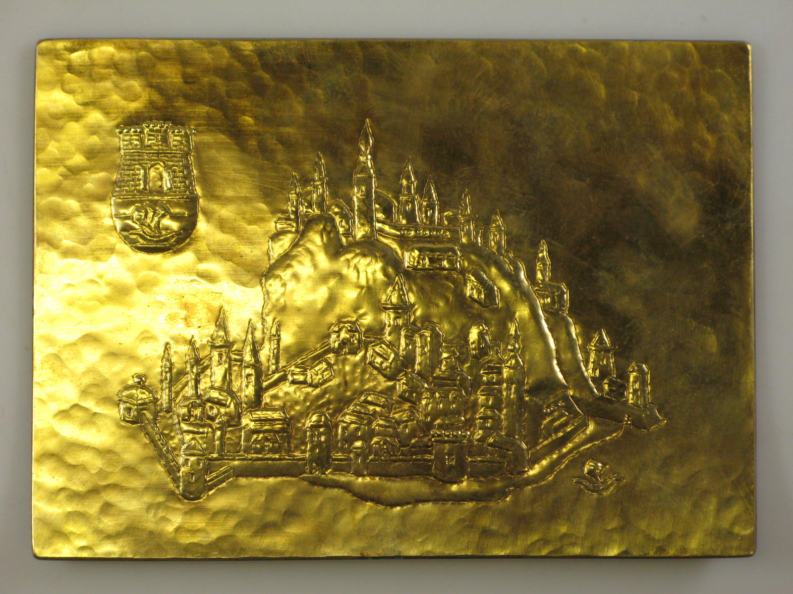 Plaquette geschonken met de complimenten van de stad...