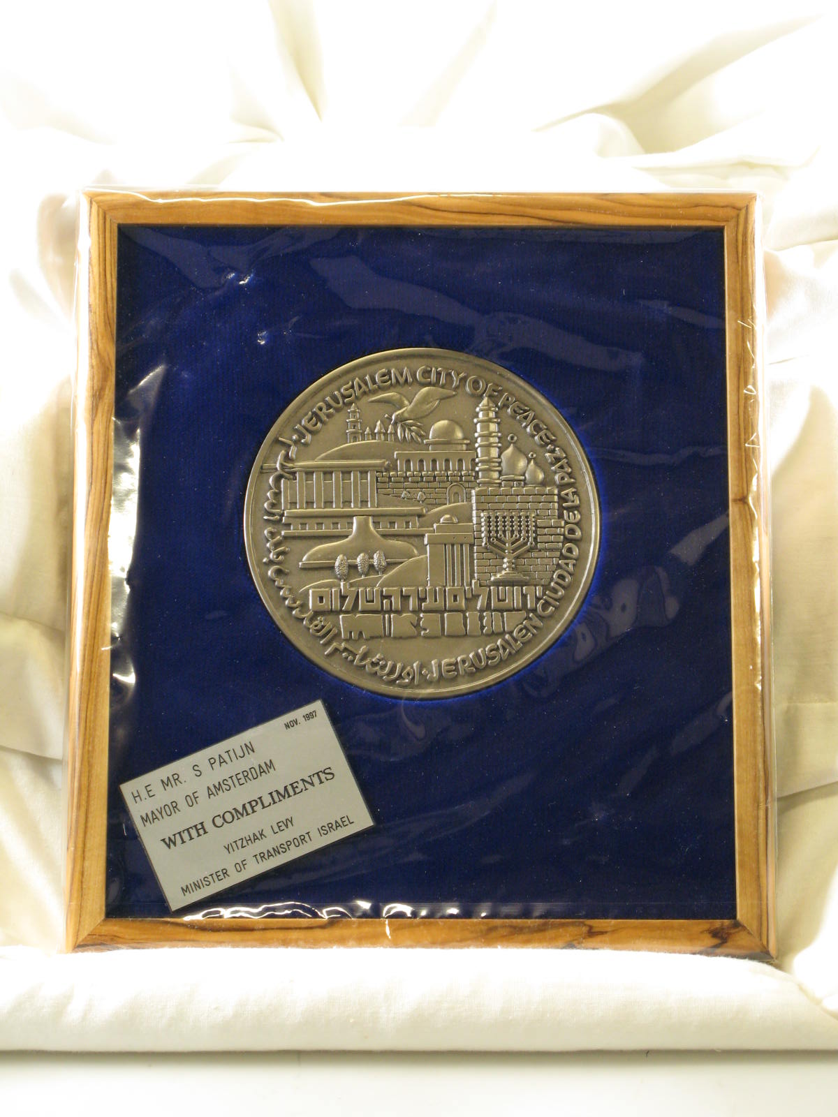 Plaquette van Jerusalem city of peace, verkregen van...
