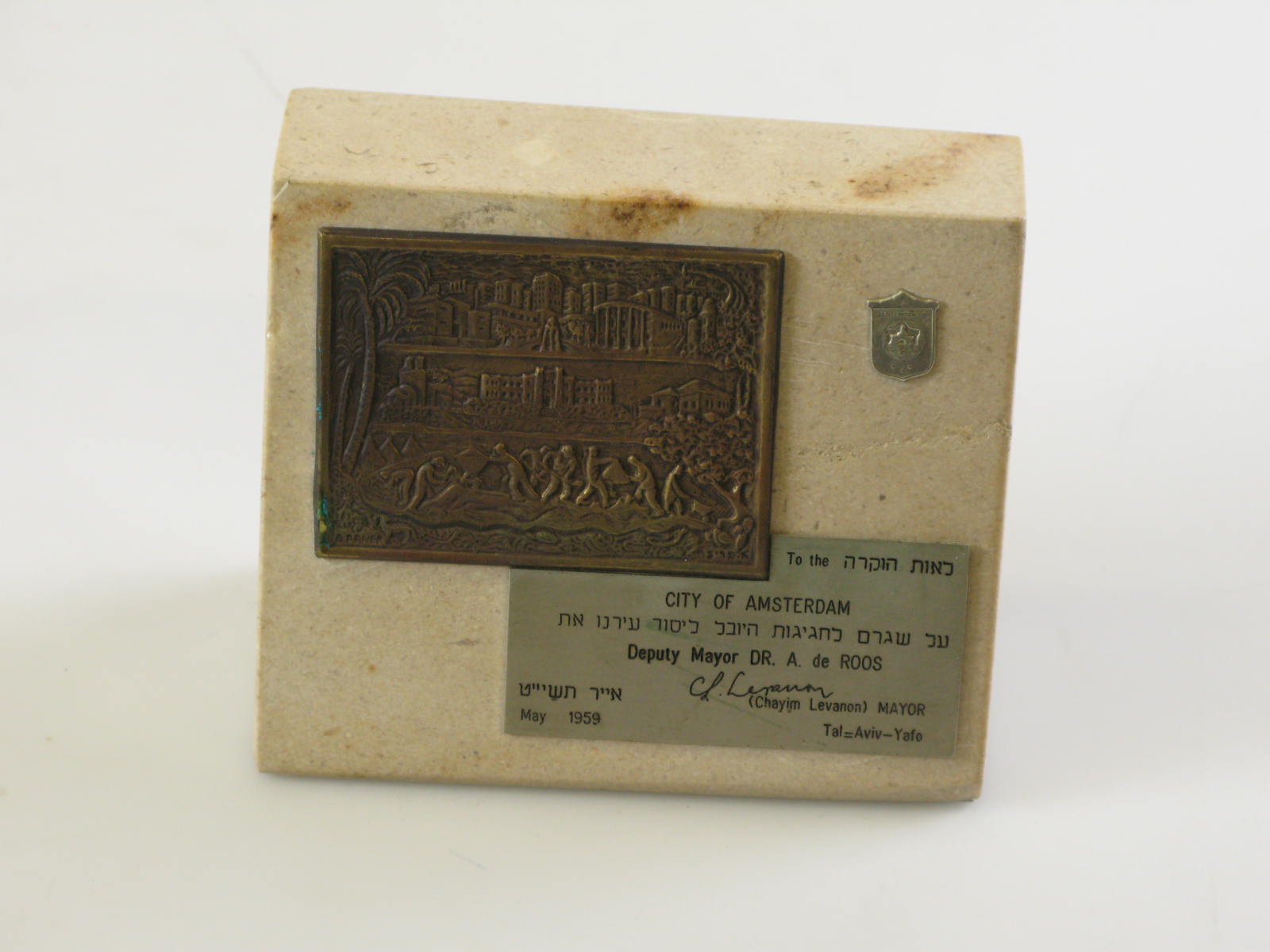 Bronzen plaquette op steen uit Tel-Aviv-Yafo, voor A...