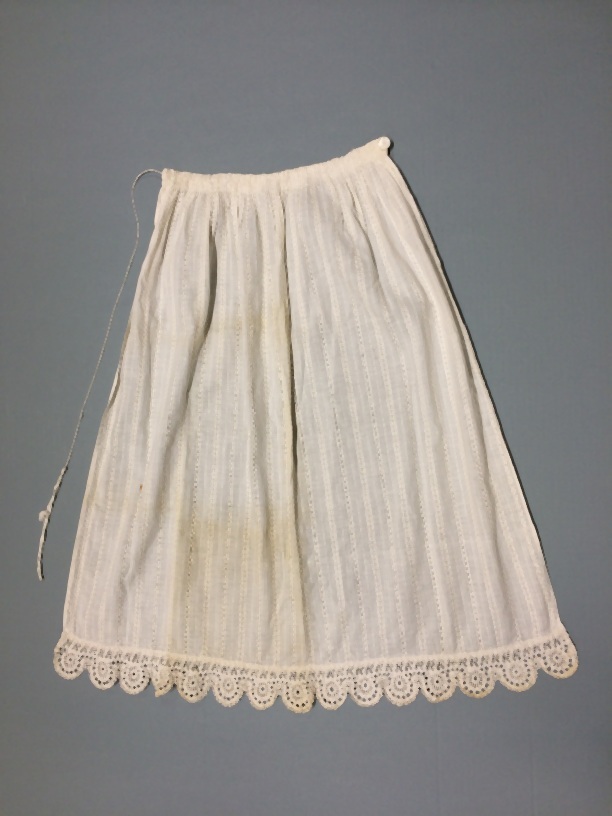 Wit katoenen schortje met ingeweven ajourranden afge...