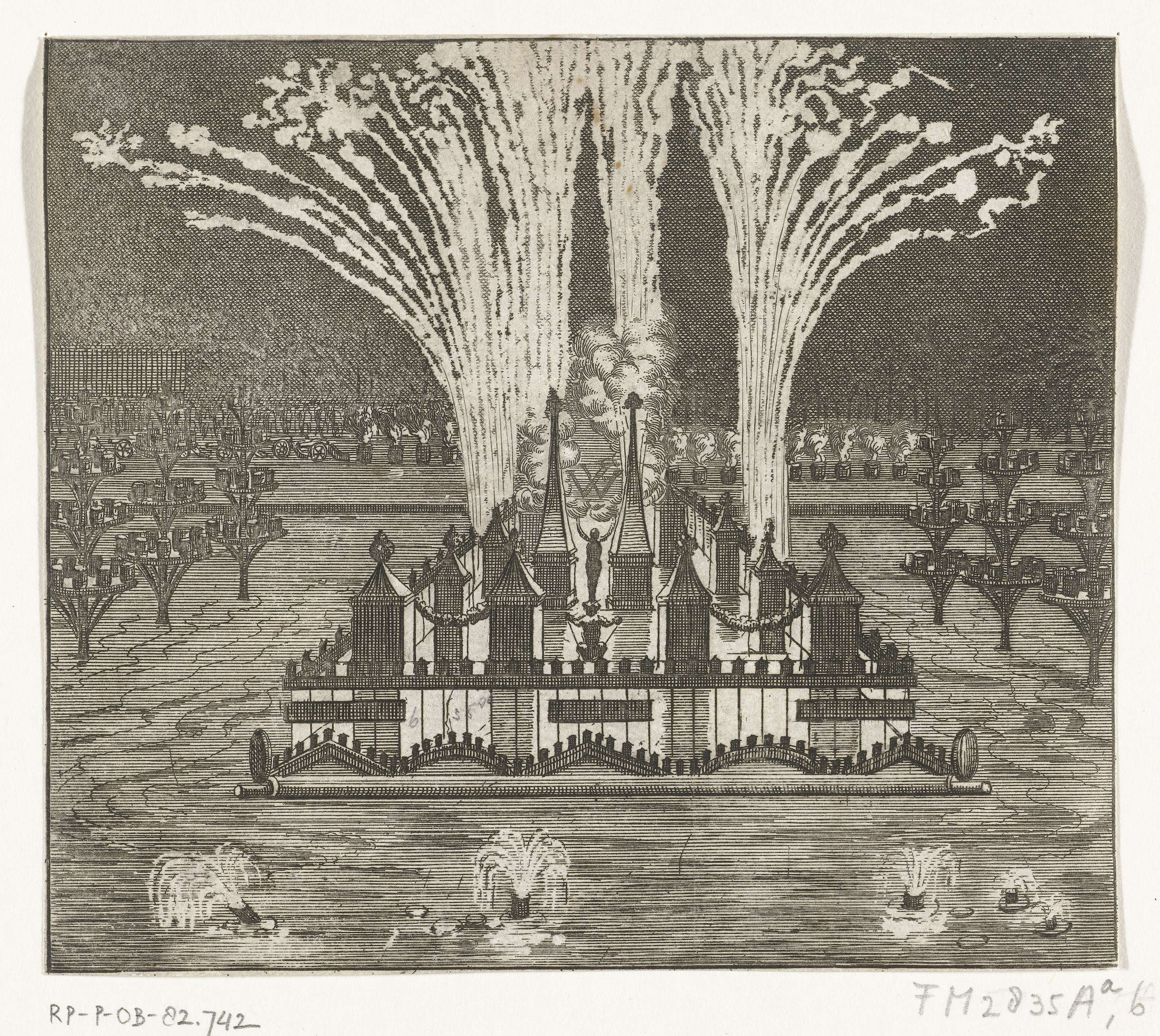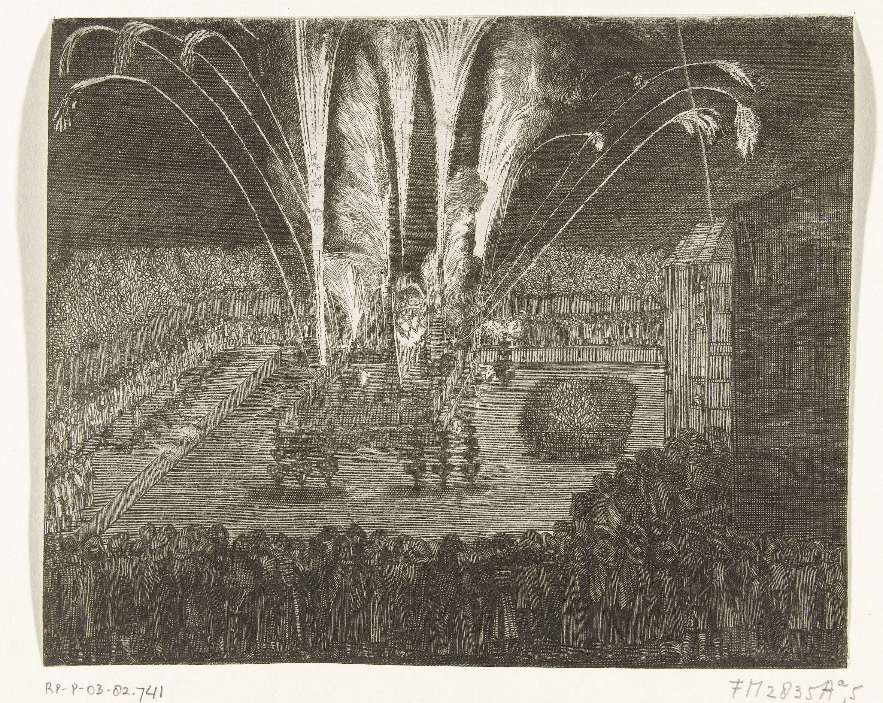 Vuurwerk bij de intocht van koning Willem III te Den...