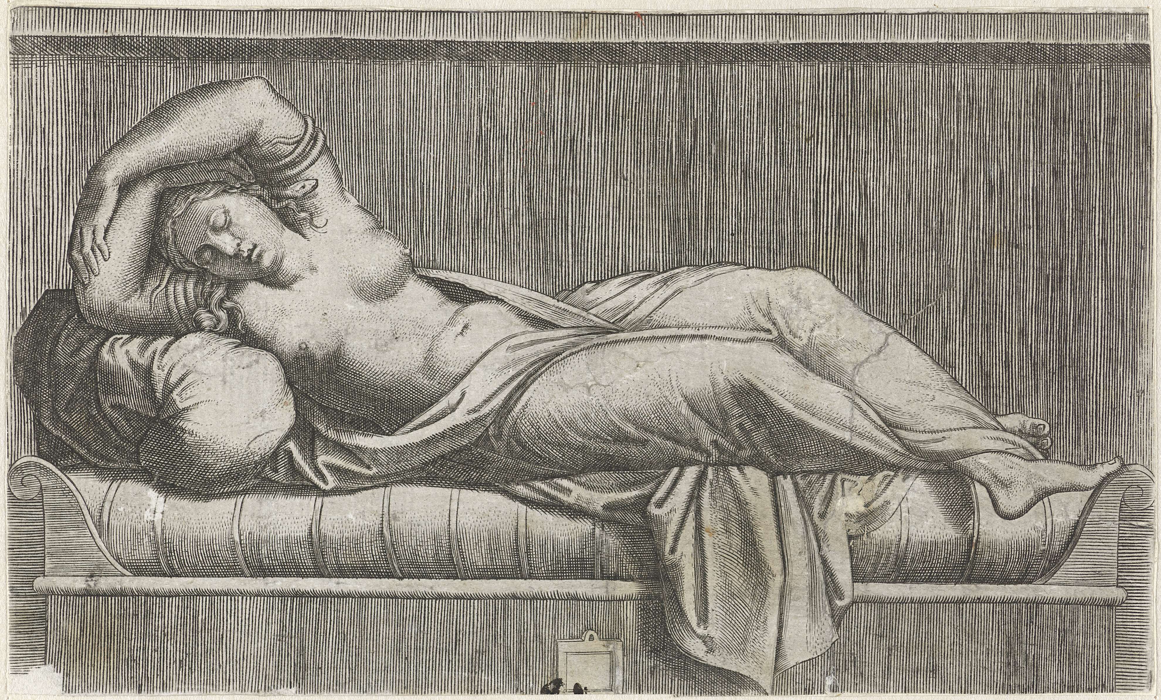 Cleopatra halfnaakt liggend op bed