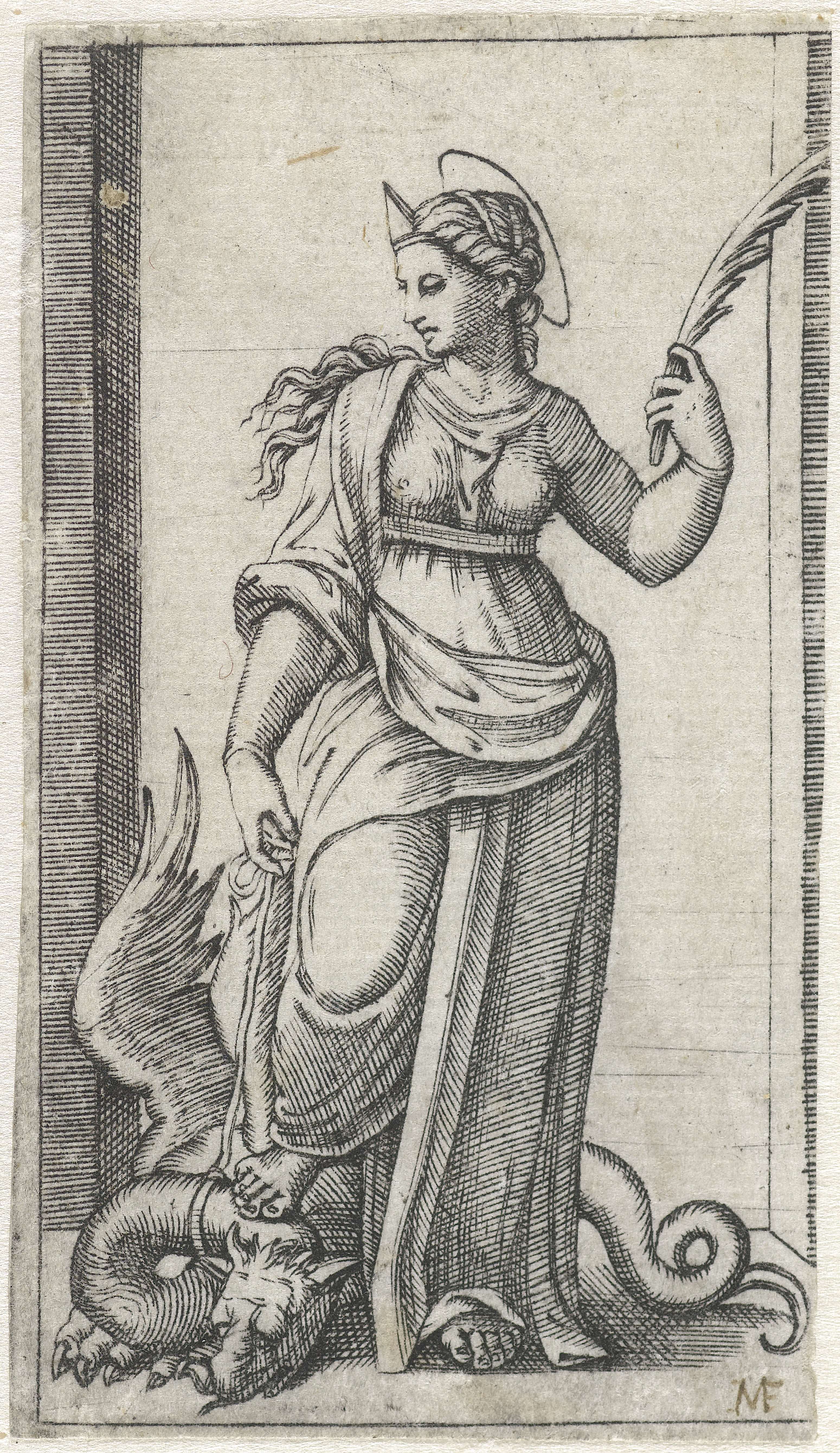 Heilige Margaretha van Antiochië met draak aan touw