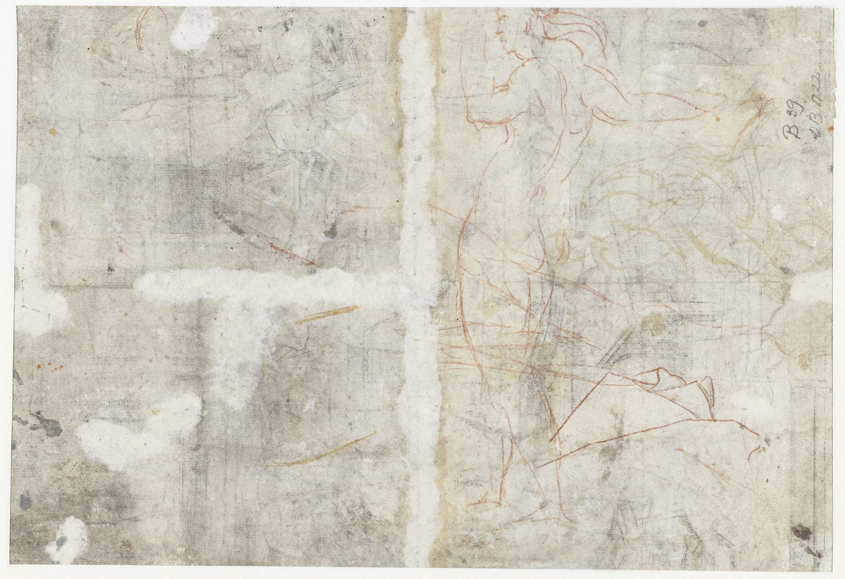 Schets van een staande naakte figuur