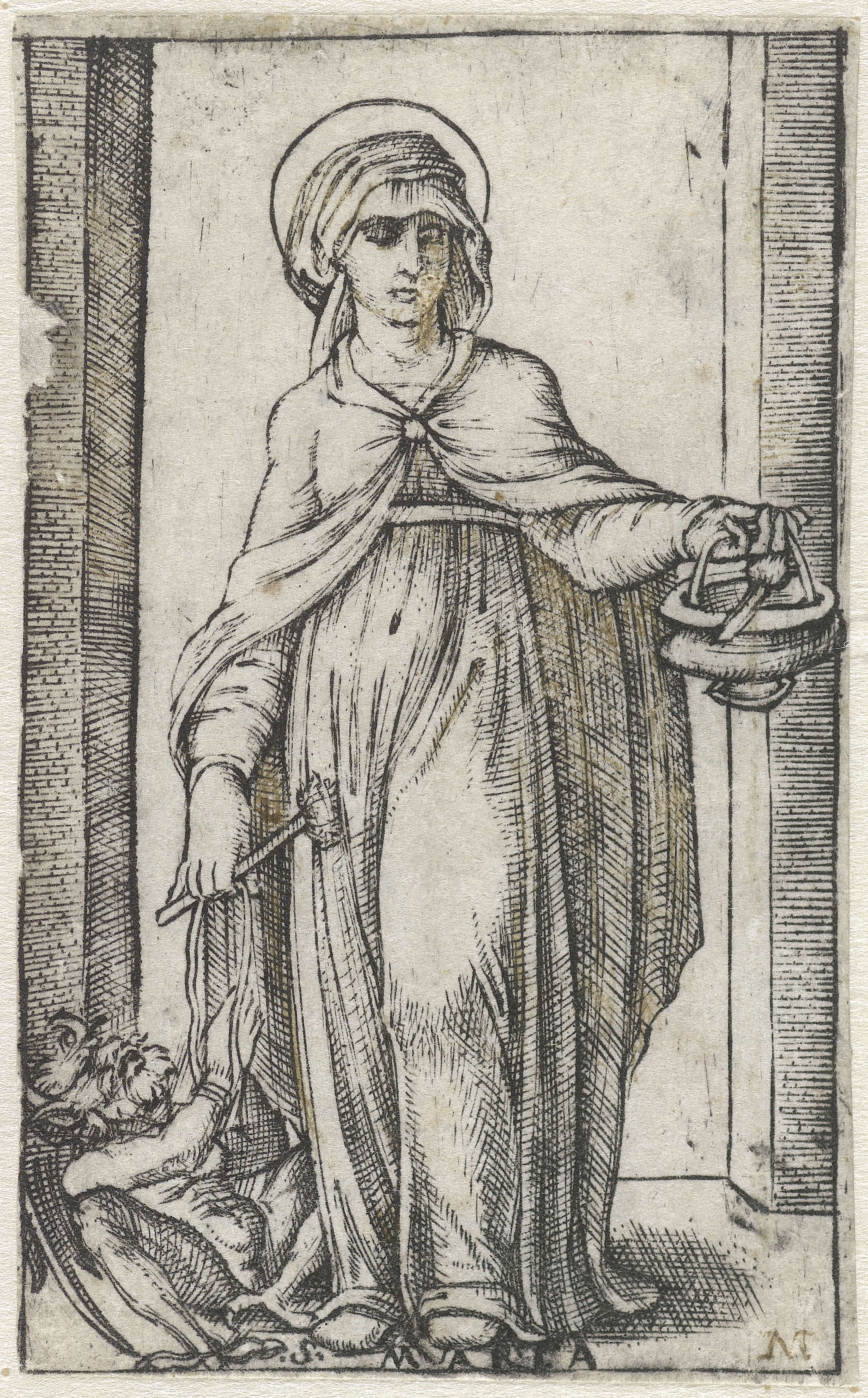 Heilige Marta met wijwatervat en vastgebonden duivel