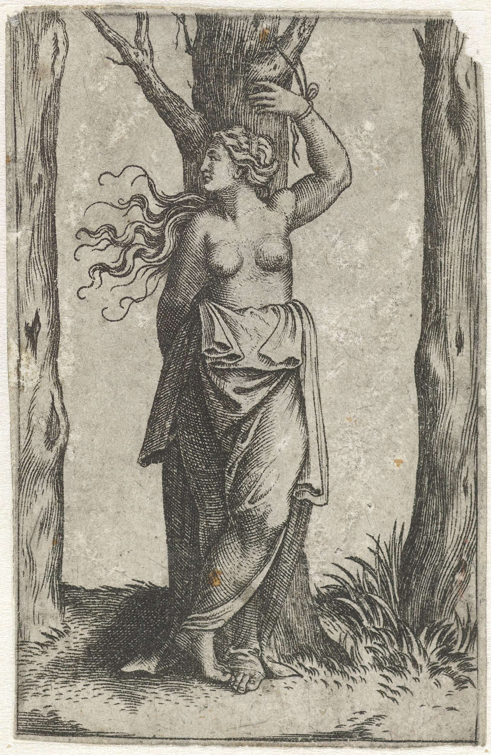 Heilige Agatha vastgebonden aan boom