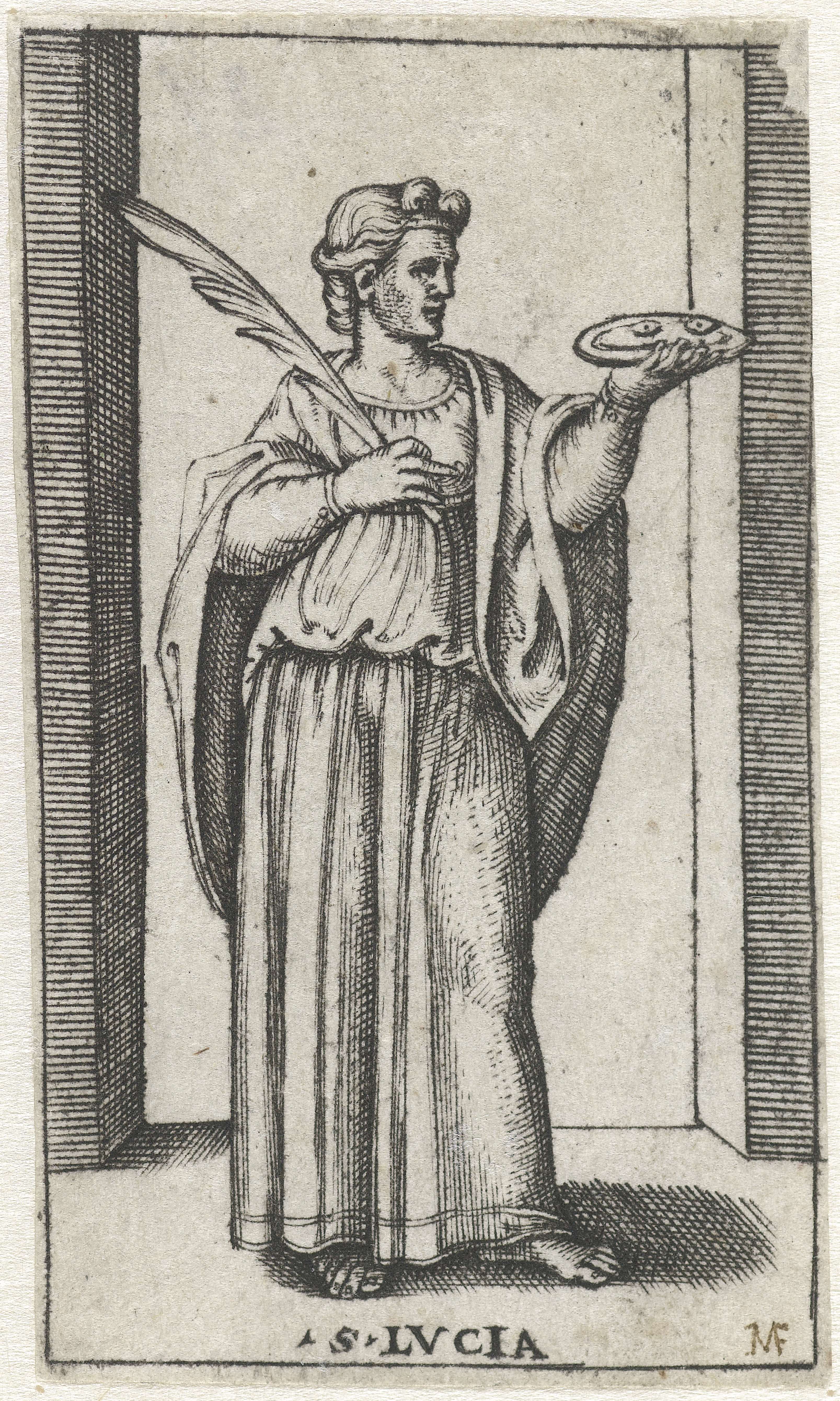 Heilige Lucia met twee ogen op bord