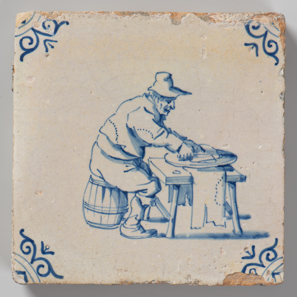 tegel van aardewerk met tinglazuur, voorstellende: k...