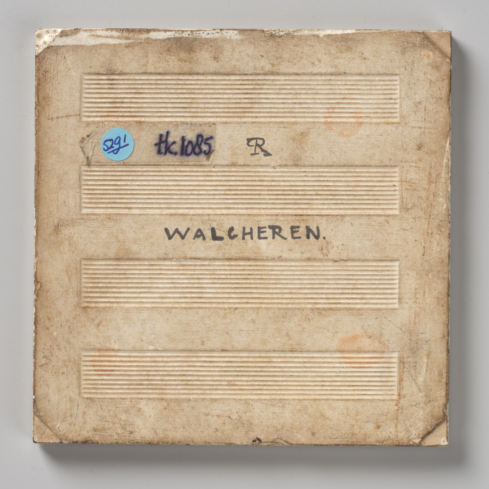 tegel van keramiek, gesjabloneerd, voorstellende: or...
