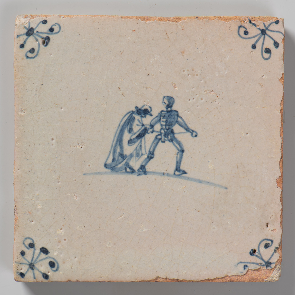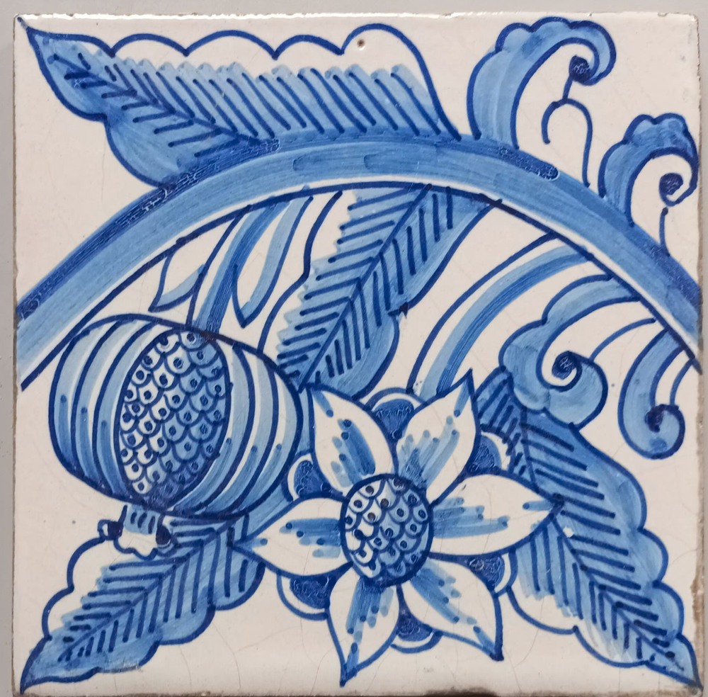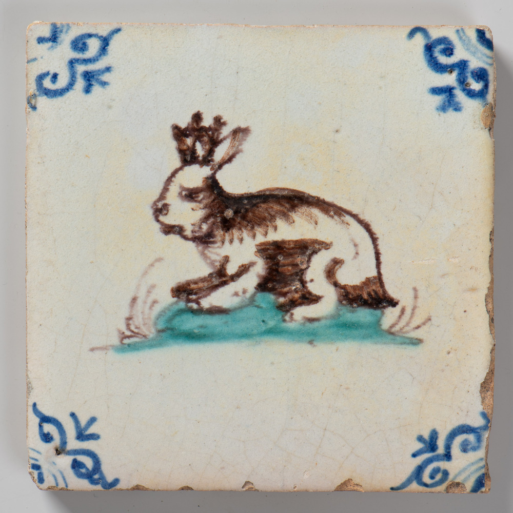 tegel van aardewerk met tinglazuur, voorstellende or...