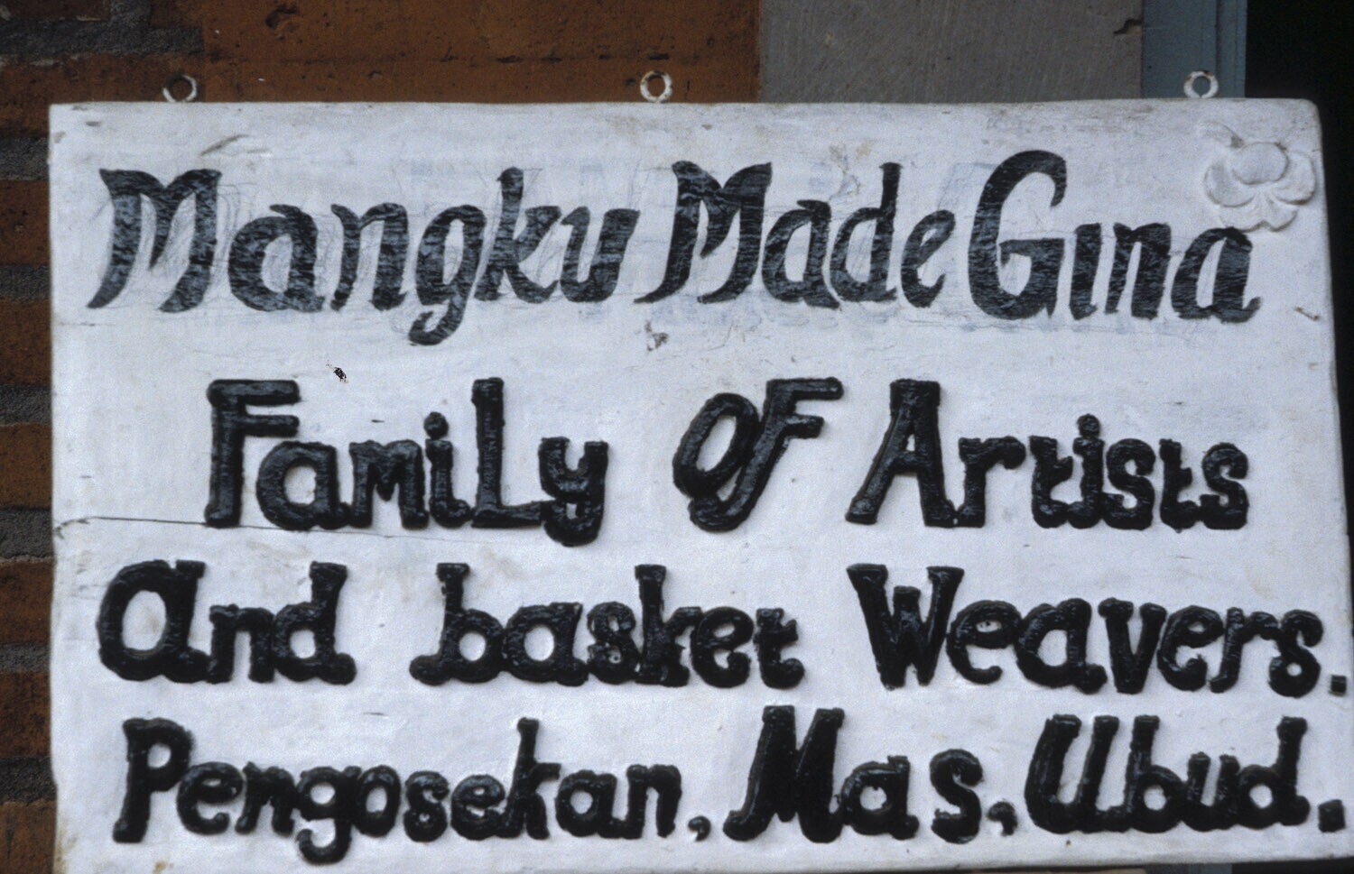 Uithangbord van het atelier Mangku Made Gina