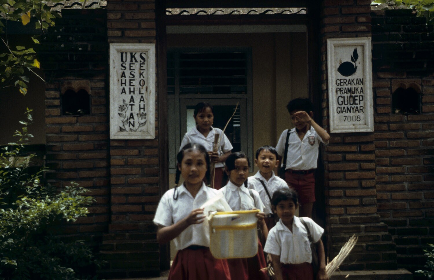 Schooljongens in uniform, Pengosekan, Bali.