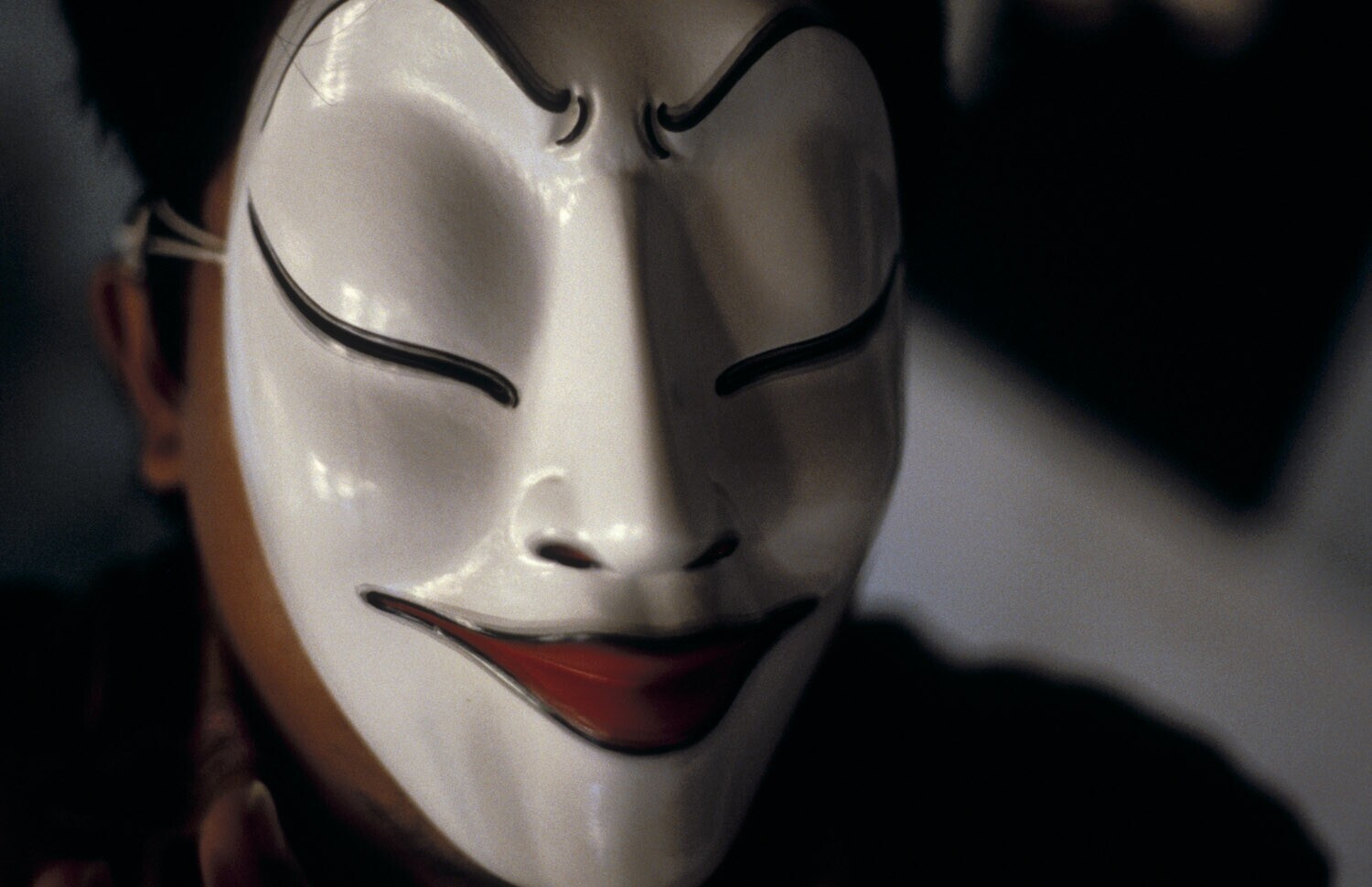 Een beschilderd masker in het atelier van maskermake...
